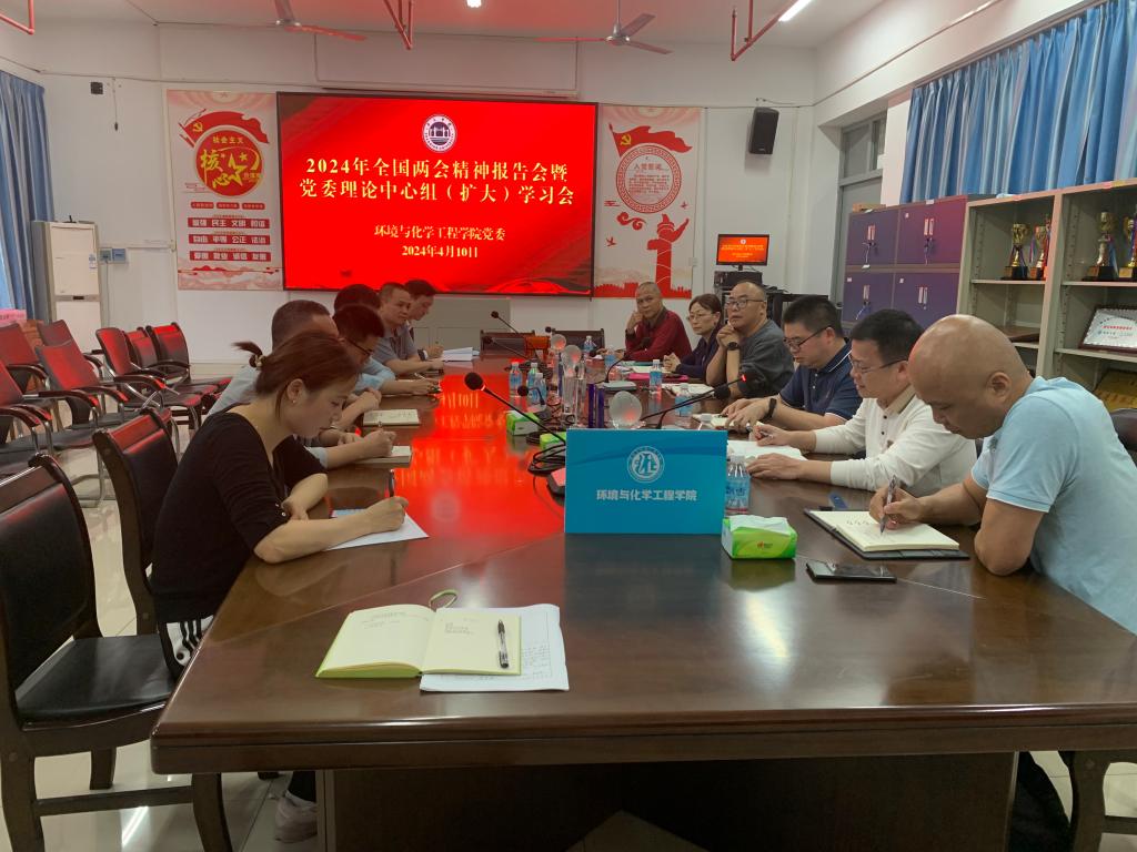 4月10日下午,环境与化学工程学院党委组织召开理论学习中心组(扩大)两会精神专题学习会,学院党委书记刘远君主持学习会并领学,学院党政领导班子成员、党委委员、师生党支部书记、分团委书记、辅导员参加学习。