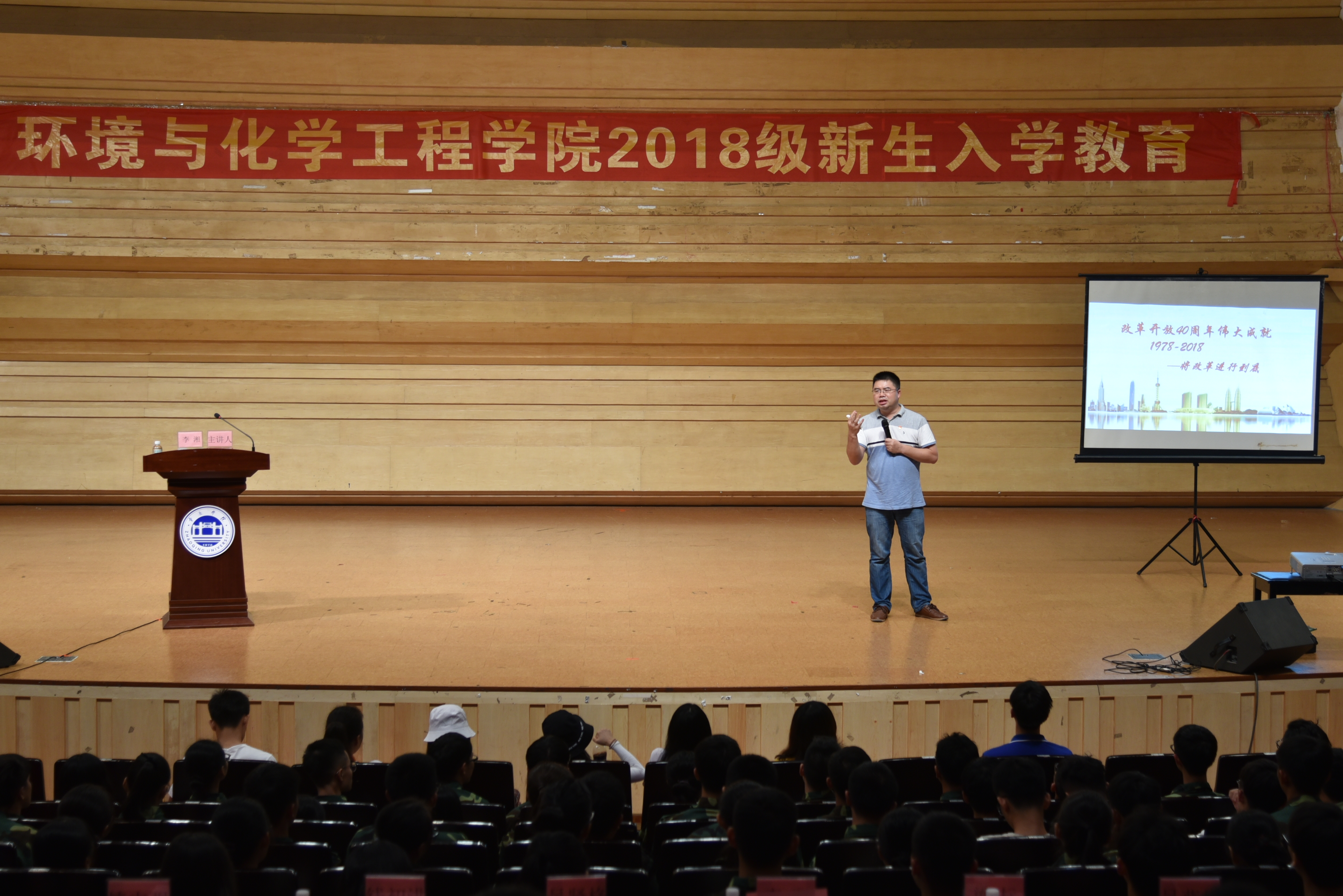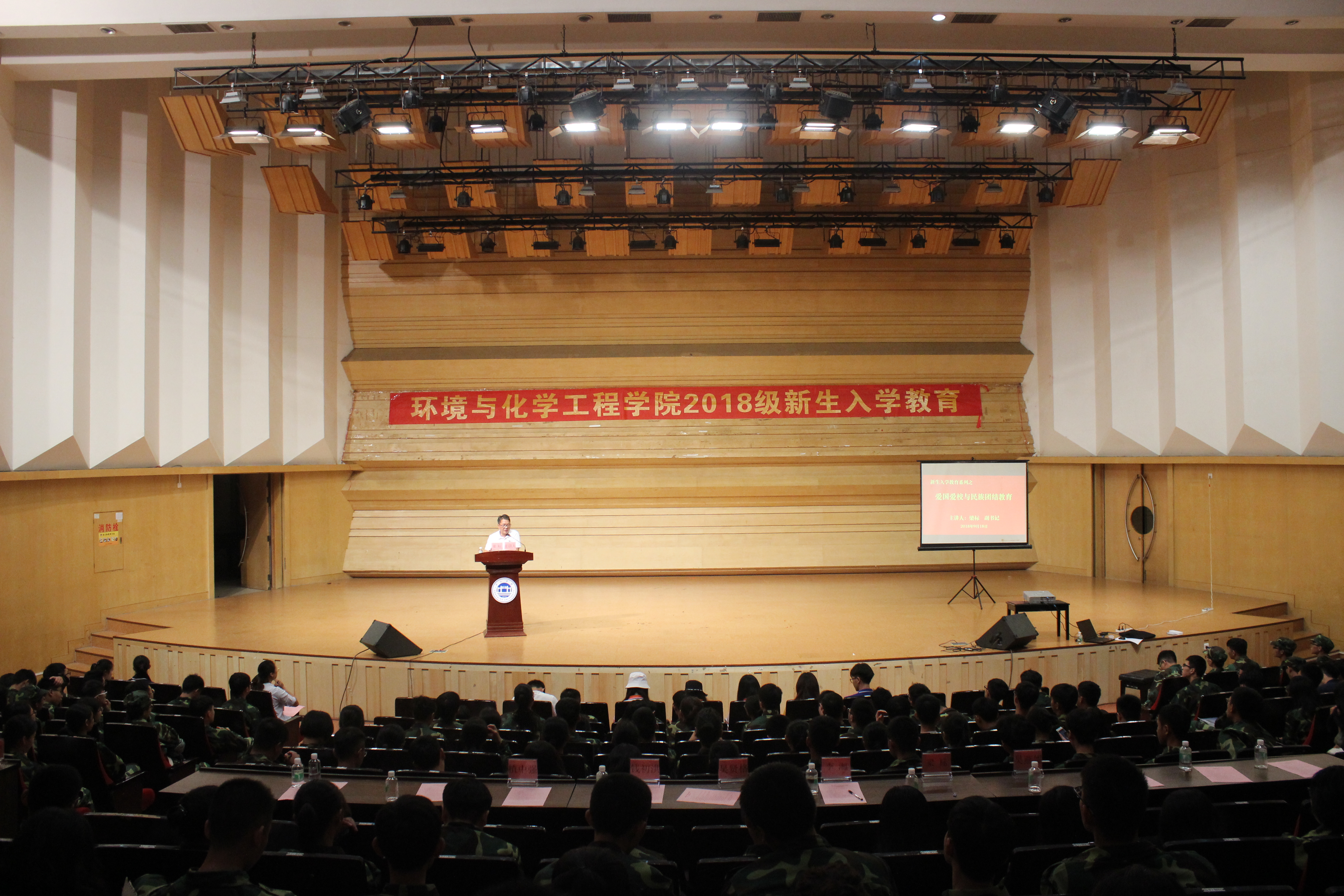 【环境与化学工程学院本网讯】9月18日晚,环境与化学工程学院2018级新生社会主义核心价值、“中国梦”及爱国主义和民族团结教育活动在陈熹音乐厅举行,学院党委书记李湘、党委副书记梁标分别开展主题讲座,学院专职组织员、辅导员、新生班班主任、学生带班党员和全体2018级新生参加了此次主题教育活动。