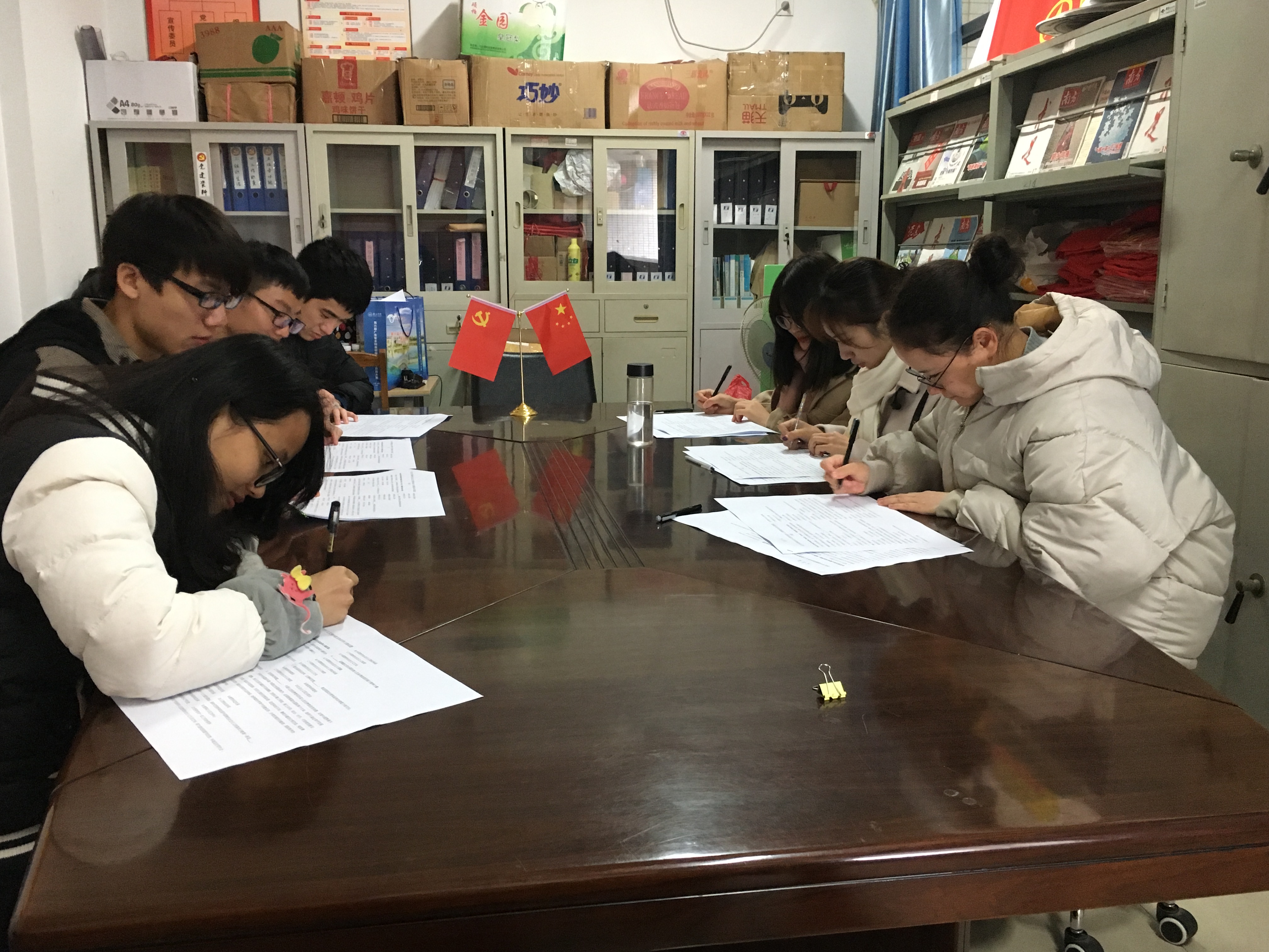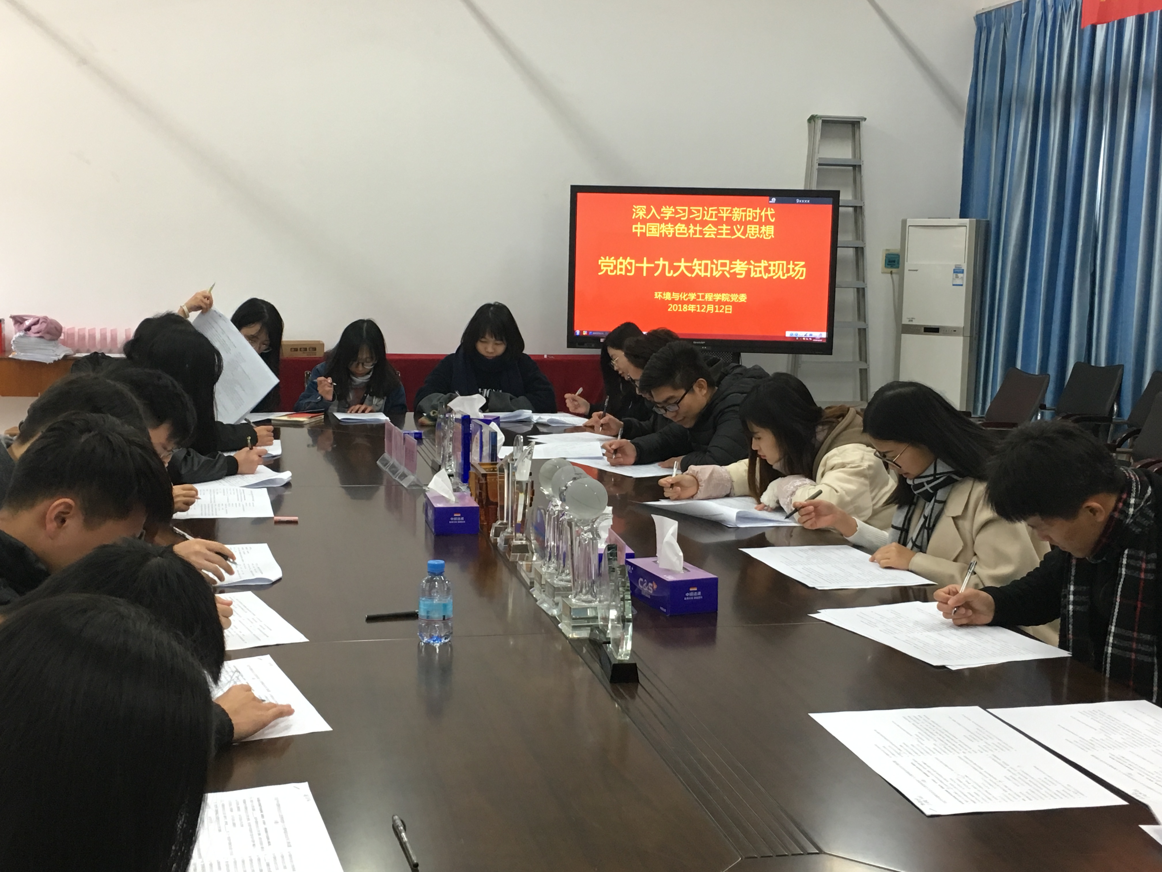 为进一步深化对习近平新时代中国特色社会主义思想和党的十九大知识的学习,推进“两学一做”学习教育常态化、制度化。12月12日下午,环境与化学工程学院党委组织党员在学院会议室、党员活动室集中开展学习党的十九大精神知识测试。测试采取开卷形式,要求在规定时间内进行集中答卷,旨在检验和巩固师生党员学习党的十九大精神的成果,自觉把思想和行动统一到党的十九大精神上来。(撰稿、摄影:胥家桢)