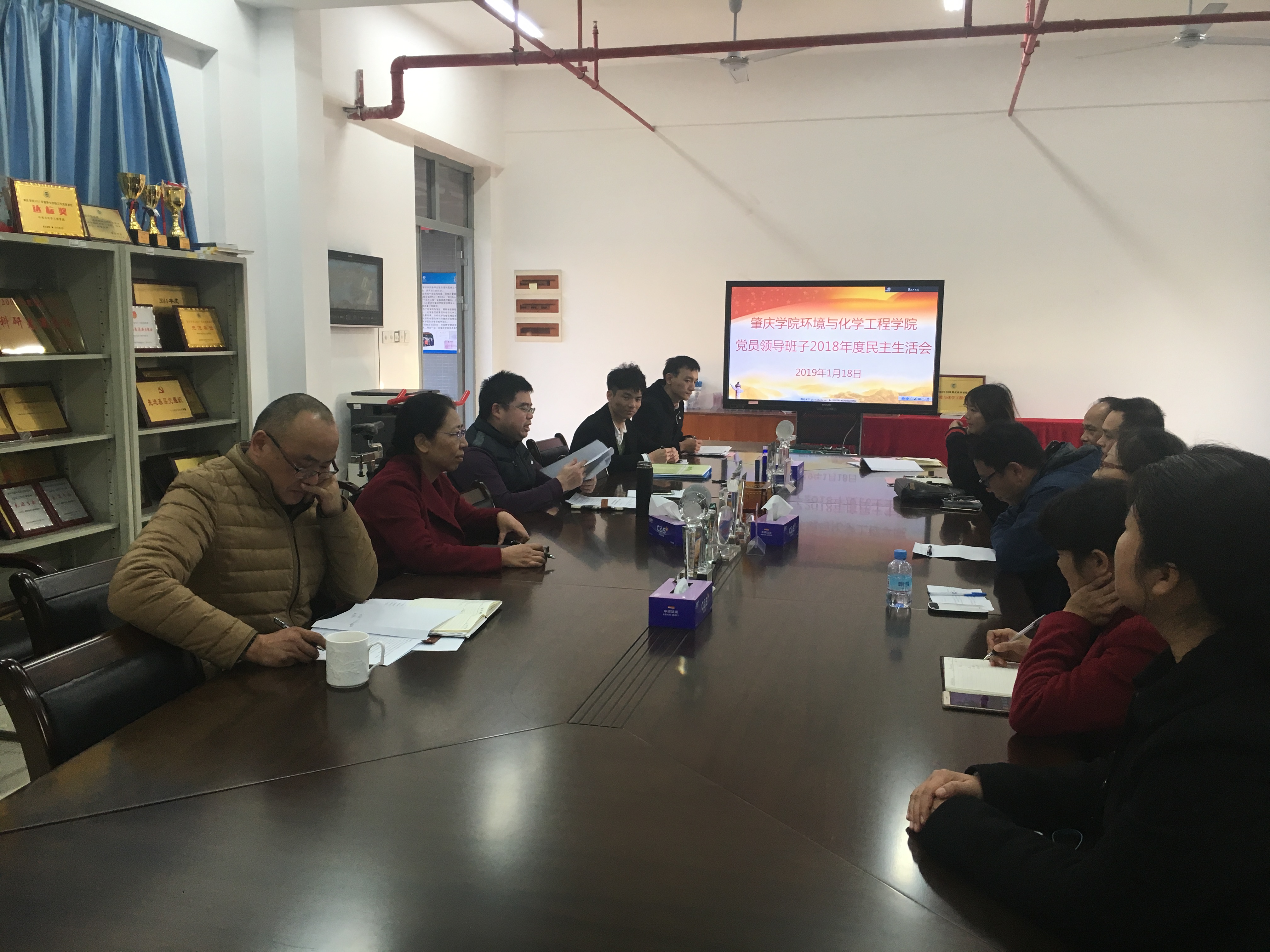 根据学校党委《关于认真开好我校2018年度党员领导干部民主生活会的通知》(肇学委〔2019〕2号)的精神和要求,1月18日下午,环境与化学工程学院召开党员领导干部子民主生活会,学院党委书记李湘、院长郝向英、副院长吴贤格出席会议,学院党委委员、党支部书记、系主任、民主党派教师代表等人列席会议。民主生活会由学院党委书记李湘主持。