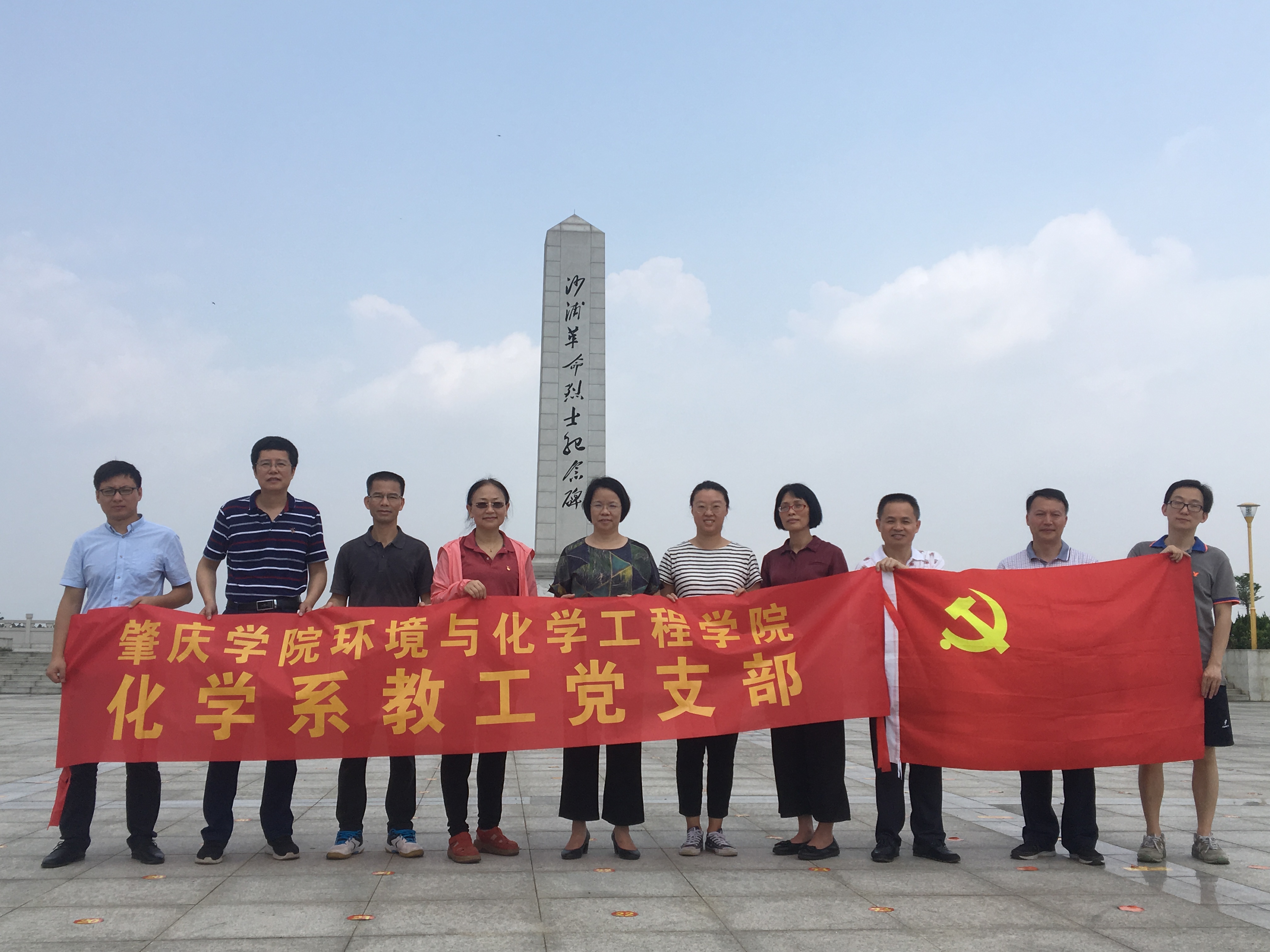 5月18日上午,学校“双带头人”教师党支部——环境与化学工程学院化学系教工党支部全体党员赴肇庆鼎湖区沙浦革命烈士纪念碑教育基地,开展了以“缅怀革命先烈、担当育人使命”为主题的党日活动。学校党委委员、教育发展基金会理事长沈钦萍、学院专职组织员胥家桢两位同志一同参加了此次主题党日活动。