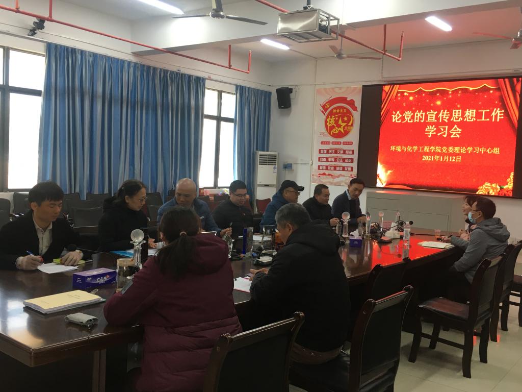1月12日下午,环境与化学工程学院党委理论学习中心组召开专题学习会,集体学习习近平同志《论党的宣传思想工作》部分内容,学习会由学院党委书记李湘同志主持。