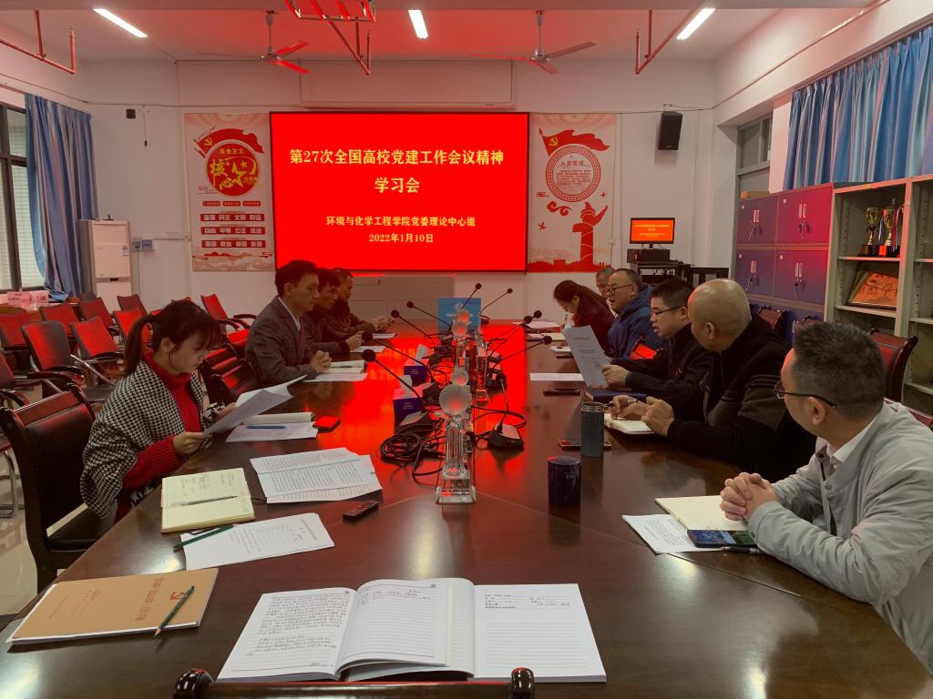 1月10日上午,环境与化学工程学院党委理论学习中心组召开学习会,专题学习第二十七次全国高校党的建设工作会议精神,党委书记李湘主持会议。