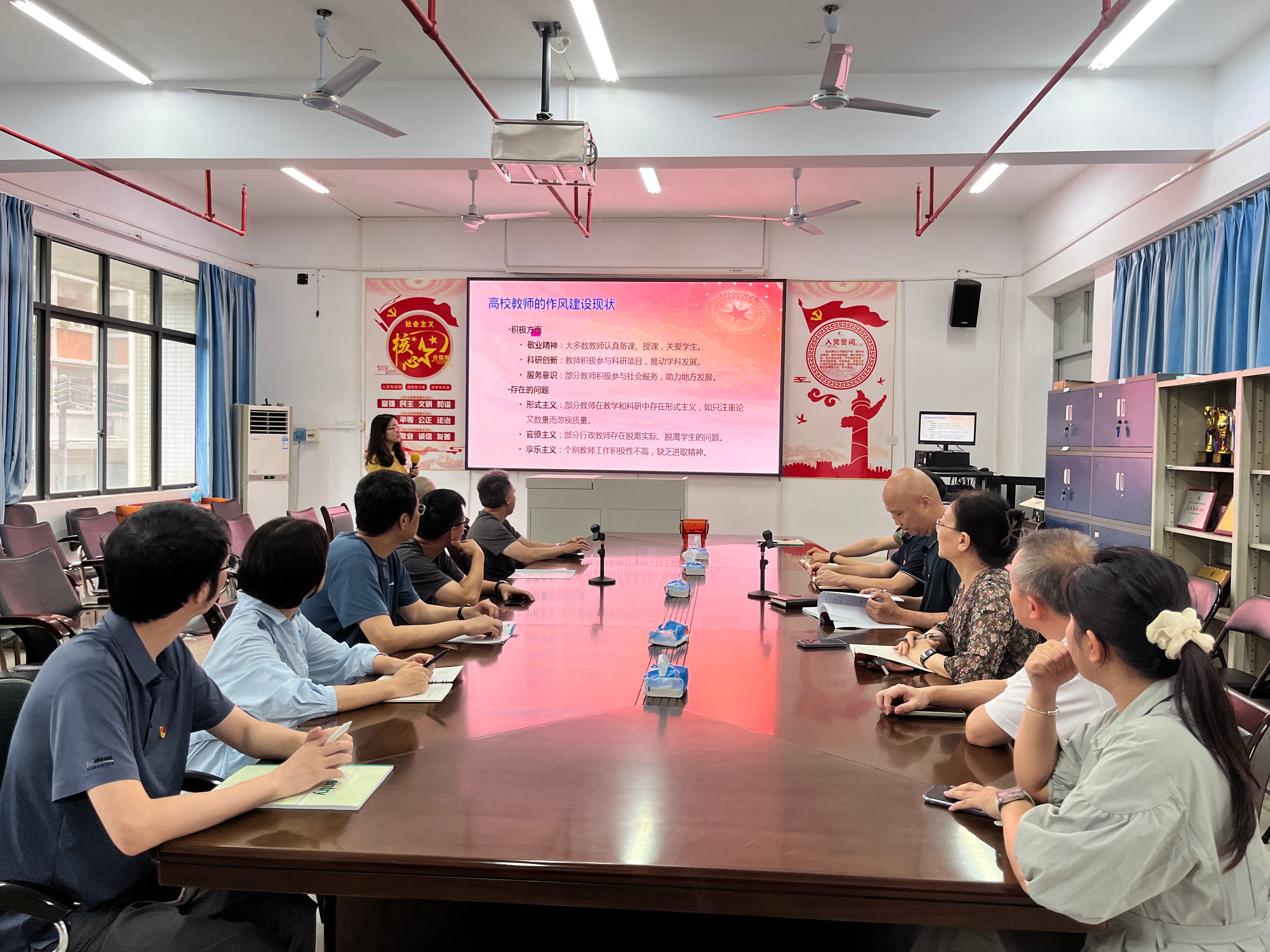活动伊始,党支部书记陈莲芬同志带领全体党员教师认真学习了习近平总书记关于作风建设的系列重要论述。习近平总书记强调作风建设是党的建设的重要组成部分,关乎党的形象、人心向背以及党和国家事业的兴衰成败。通过对相关论述的深入研读,党员教师们深刻认识到作风建设的长期性、艰巨性和重要性。在高校工作中,良好的作风不仅是教师个人师德师风的体现,更是影响学生成长成才、推动学校教育事业发展的关键因素。