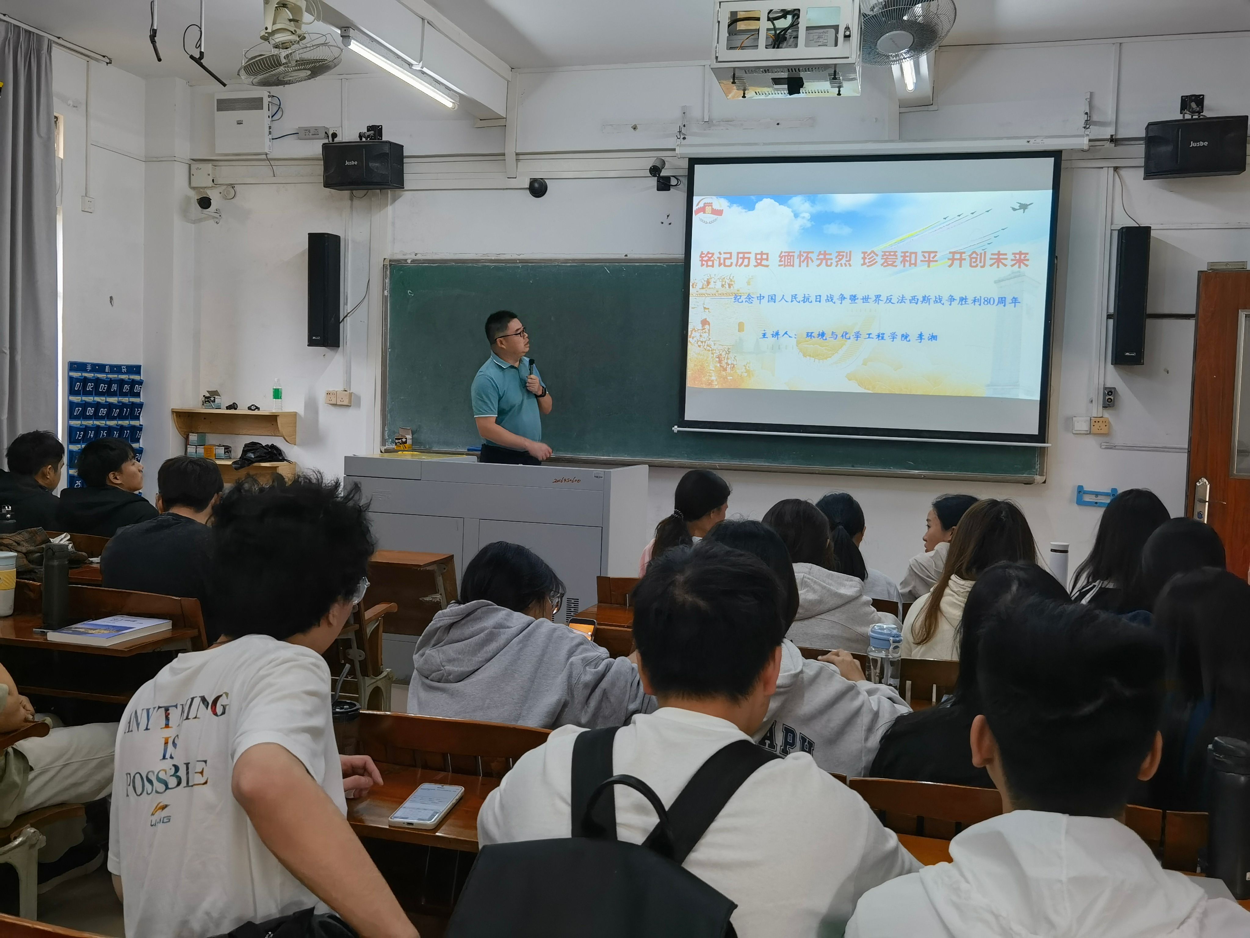 为纪念中国人民抗日战争暨世界反法西斯战争胜利80周年,10月22日,院长李湘以“铭记历史、缅怀先烈、珍爱和平、开创未来”为主题,为2023级环境工程2班学生讲授了一堂深刻而富有时代意义的“思政第一课”。