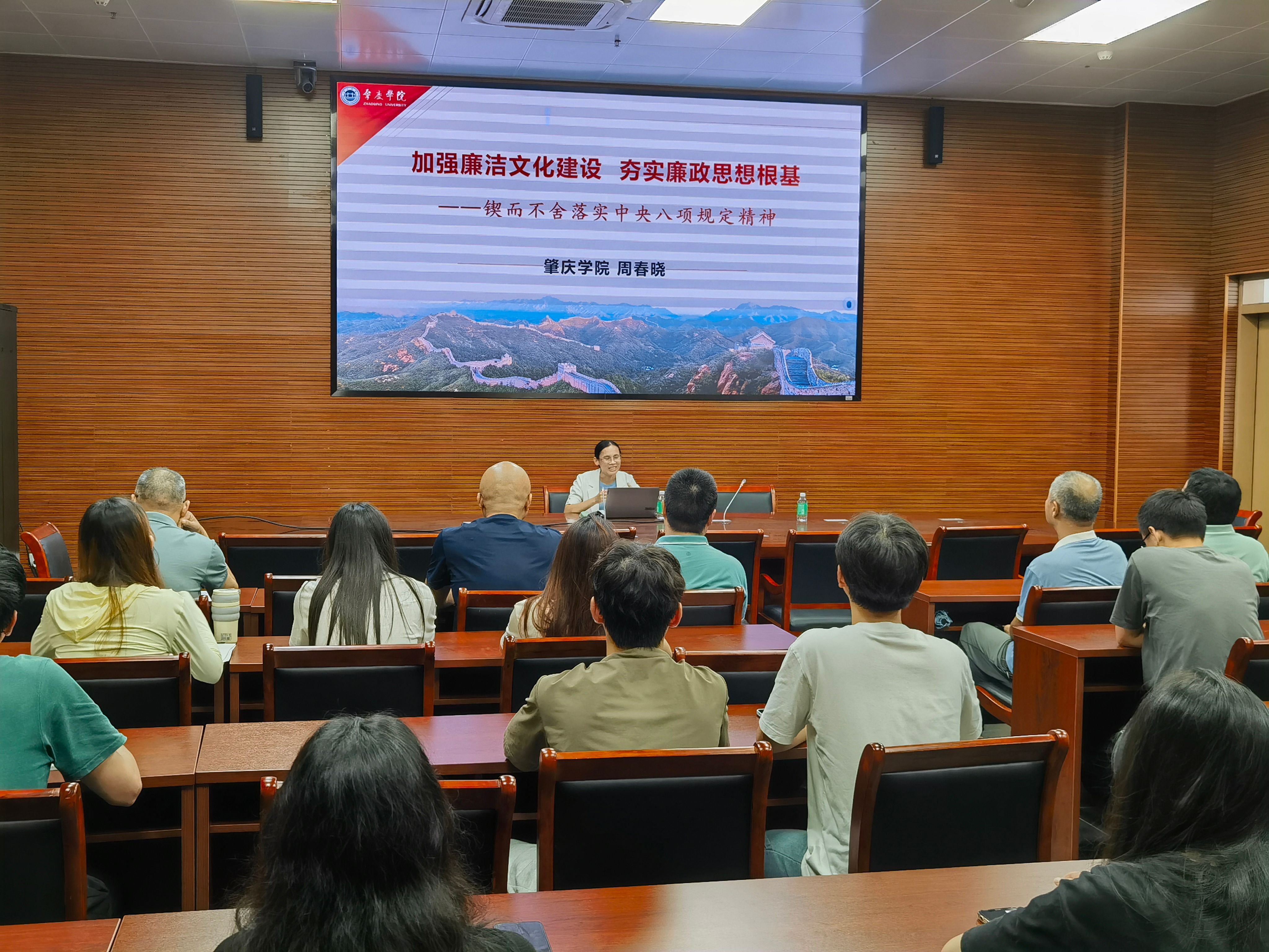 为进一步深入学习领会习近平总书记关于加强党的作风建设的重要论述,学习领会和贯彻落实中央八项规定及其实施细则精神,推进作风建设常态化长效化。6月18日下午,环境与化学工程学院党委邀请马克思主义学院副教授、学科教学(思政)专业硕士生导师,肇庆市高层次人才周春晓博士开展“加强廉洁文化建设 夯实廉政思想根基”专题宣讲会,学院师生党员代表50余人参会。