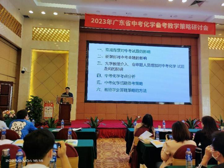 2023年3月4-5日,刘平老师为广东省恩大公司组织的全省中考备考会做《看背景、研考题、重实验、促提分》的中考备考讲座: