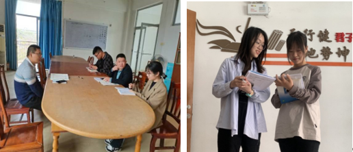 鼎湖中学化学备课组杨星老师、刘天安老师、刘爽老师对我院实习生嵇小柔同学的教学设计进行意见反馈。宣卿中学我院实习生陈温彤同学和晏为同学课后交流谈论,分享各自认为出彩的地方,体会课堂的魅力。