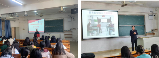 学院也非常重视师范生教育实习的质量。2月25日下午,学院一方面在一教701举行教育实习动员大会。化学教学论教师团队成员王赵志副教授和刘平教研员都对学生去到实习学校的生活、工作、与指导教师勾通、完成实习系列任务等进行讲解和任务布置。