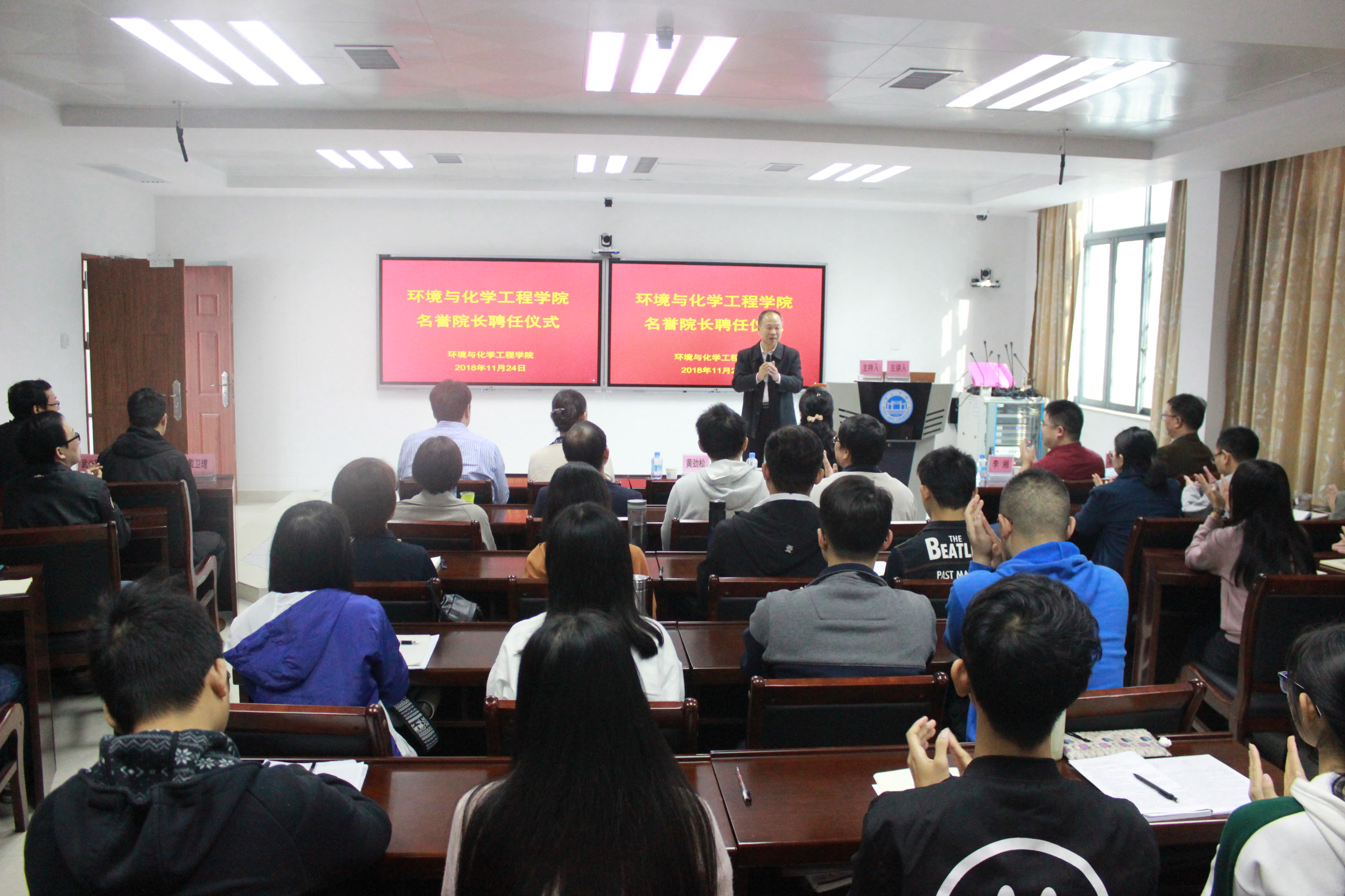 聘任仪式后,李兰冬研究员以“沸石分子筛催化”为题,为环境与化学工程学院师生作了专题报告。他详细地介绍了所在团队在分子筛催化方面的研究内容以及在能源化工领域中的应用,并热情回答了同学感兴趣的问题。(撰稿:刘炫滢,摄影:朱宝莹,编辑:胥家桢,审稿:梁标)