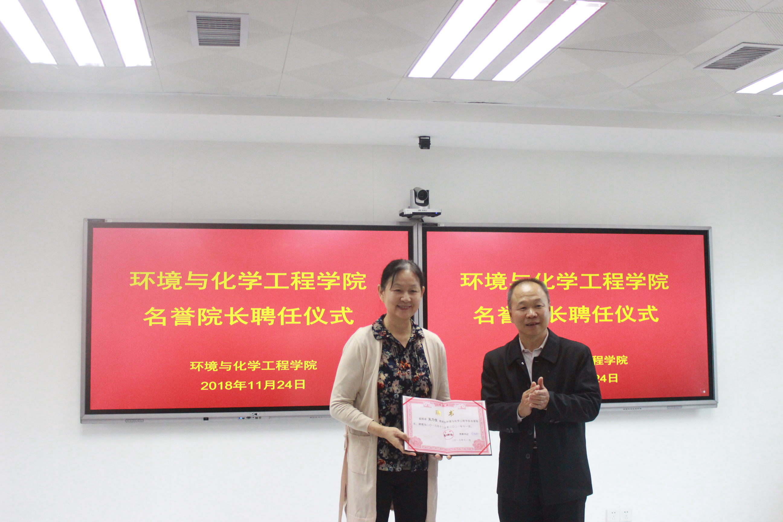 【环境与化学工程学院 本网讯】2018年11月24日上午,环境与化学工程学院聘请南开大学材料科学与工程学院教授、博士生导师关乃佳为学院名誉院长,同时学校聘请其与南开大学材料科学与工程学院研究员、博士生导师李兰冬为william威廉中文官网客座教授。聘任仪式在我校教师发展中心101室隆重举行,学校党委副书记、纪委书记黄劲松出席聘任仪式并颁发聘书。出席受聘仪式的还有南开大学材料科学与工程学院教师代表、环境与化学工程学院院长郝向英、学院党委书记李湘、副书记梁标及师生代表。