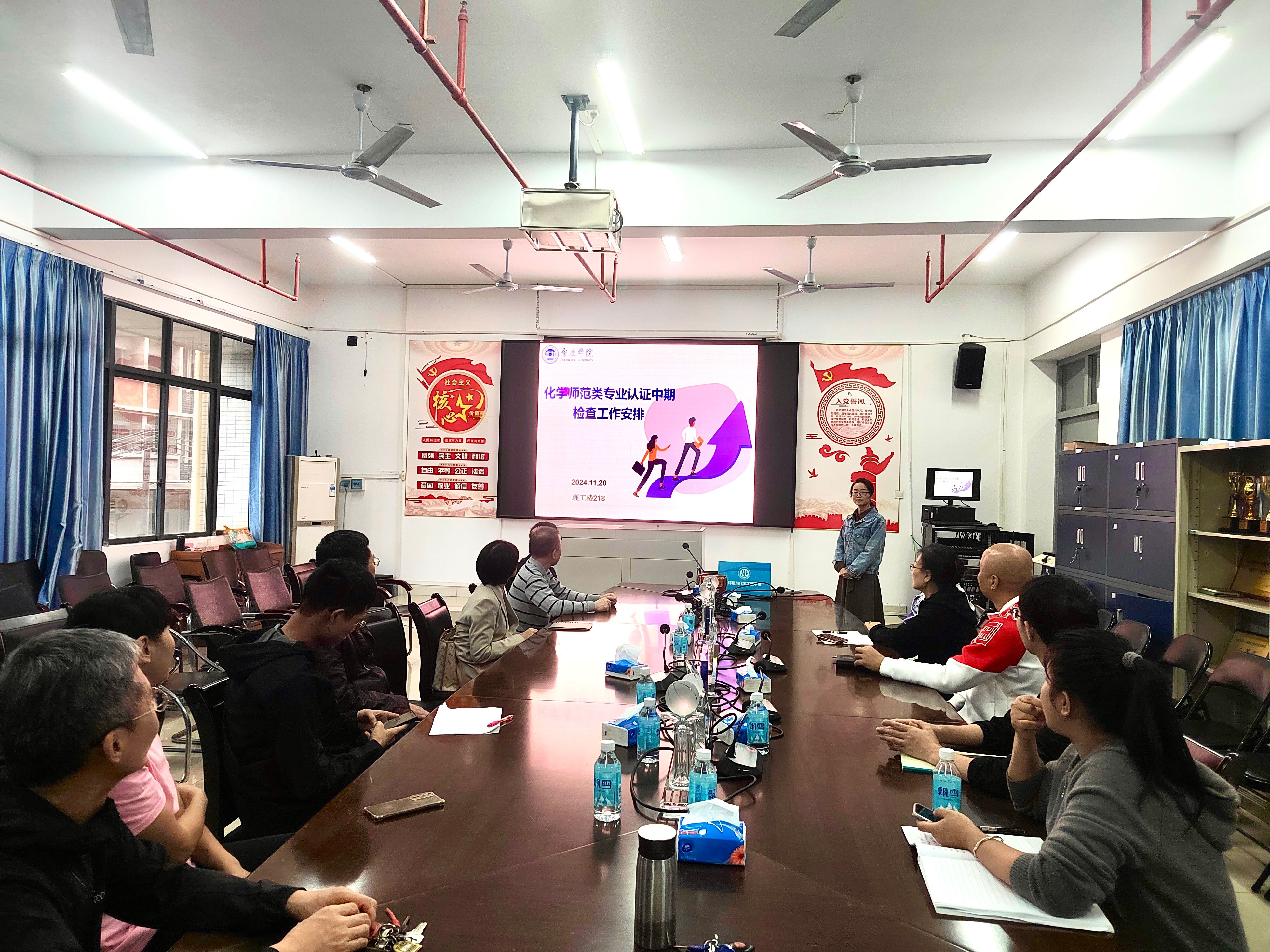 2024年11月20日,环境与化学工程学院在吴燕妮副院长主持下召开了师范类专业认证中期检查材料准备工作布置会。会议旨在全面部署和推进师范类专业认证中期检查的相关工作,确保各项材料准备充分、规范,顺利通过明年化学专业认证的中期考核。