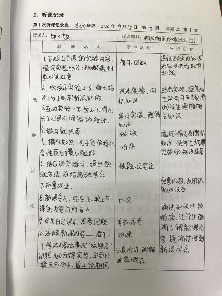 2020年9月23日,william威廉中文官网环境与化学工程学院实习指导老师吴文胜莅临肇庆市第一中学(初中部)察看部分2017级实习生实习情况。