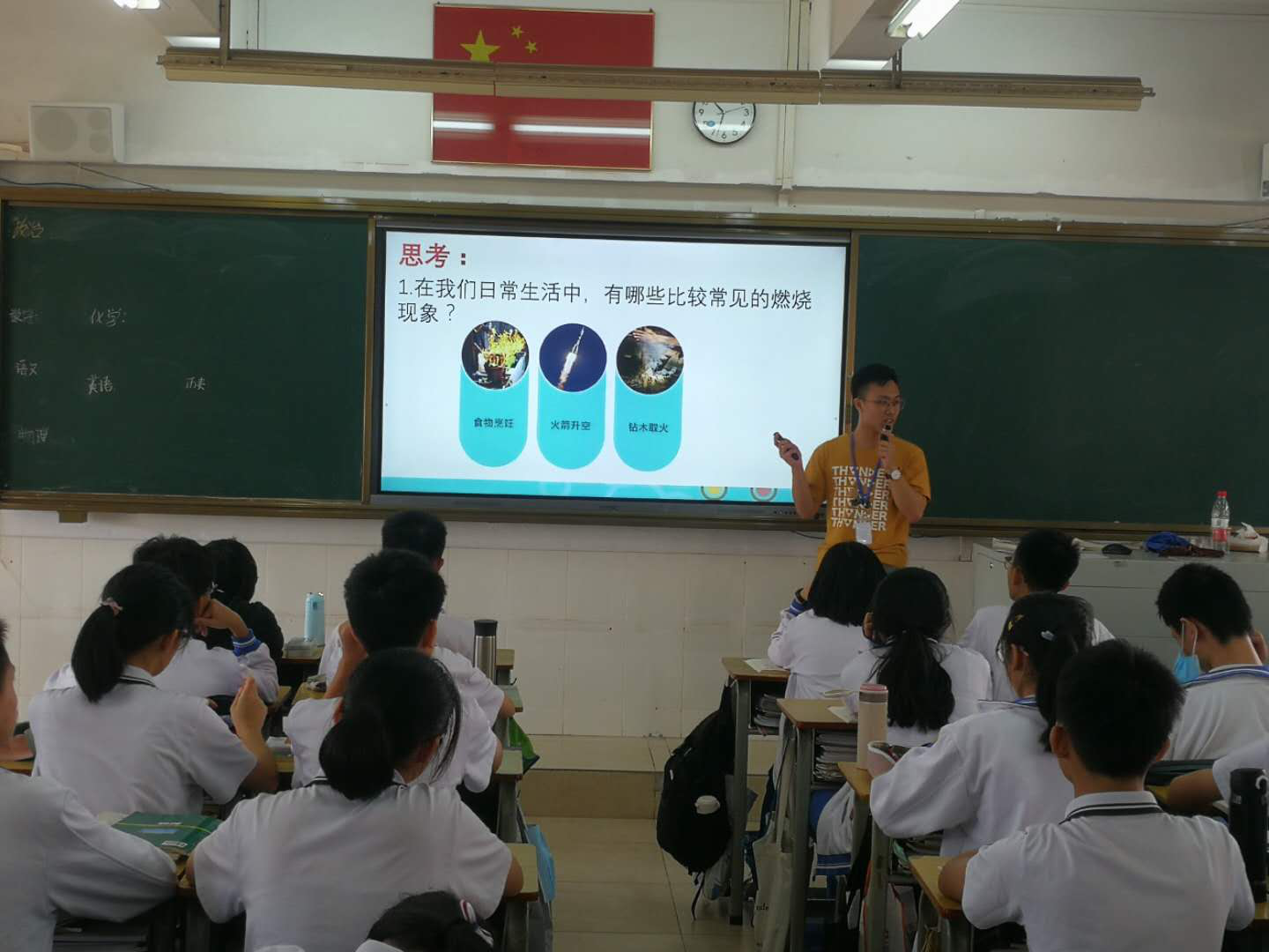 期间,吴文胜老师听评了两位实习生的上课情况,上课课题皆为《燃烧条件与灭火原理》。实习生虽然是首次站上讲台独立开展教学,但丝毫不紧张,对于课堂时间把控得当,重难点讲解明晰,与学生互动效果好,课堂氛围好,行为举止都彰显出一名师范生该有的独特风范。