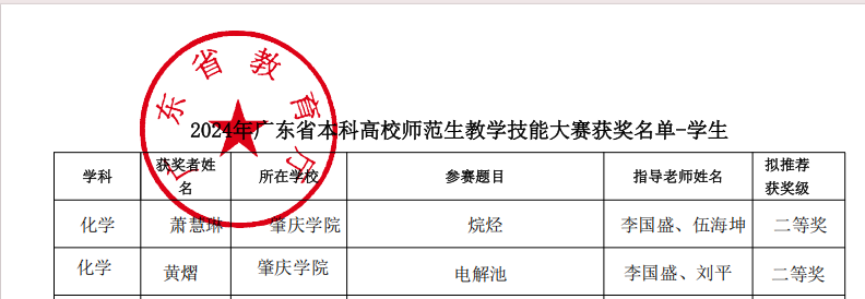 广东省教育厅关于公布2024年广东省本科高校师范生教学技能大赛获奖名单的通知