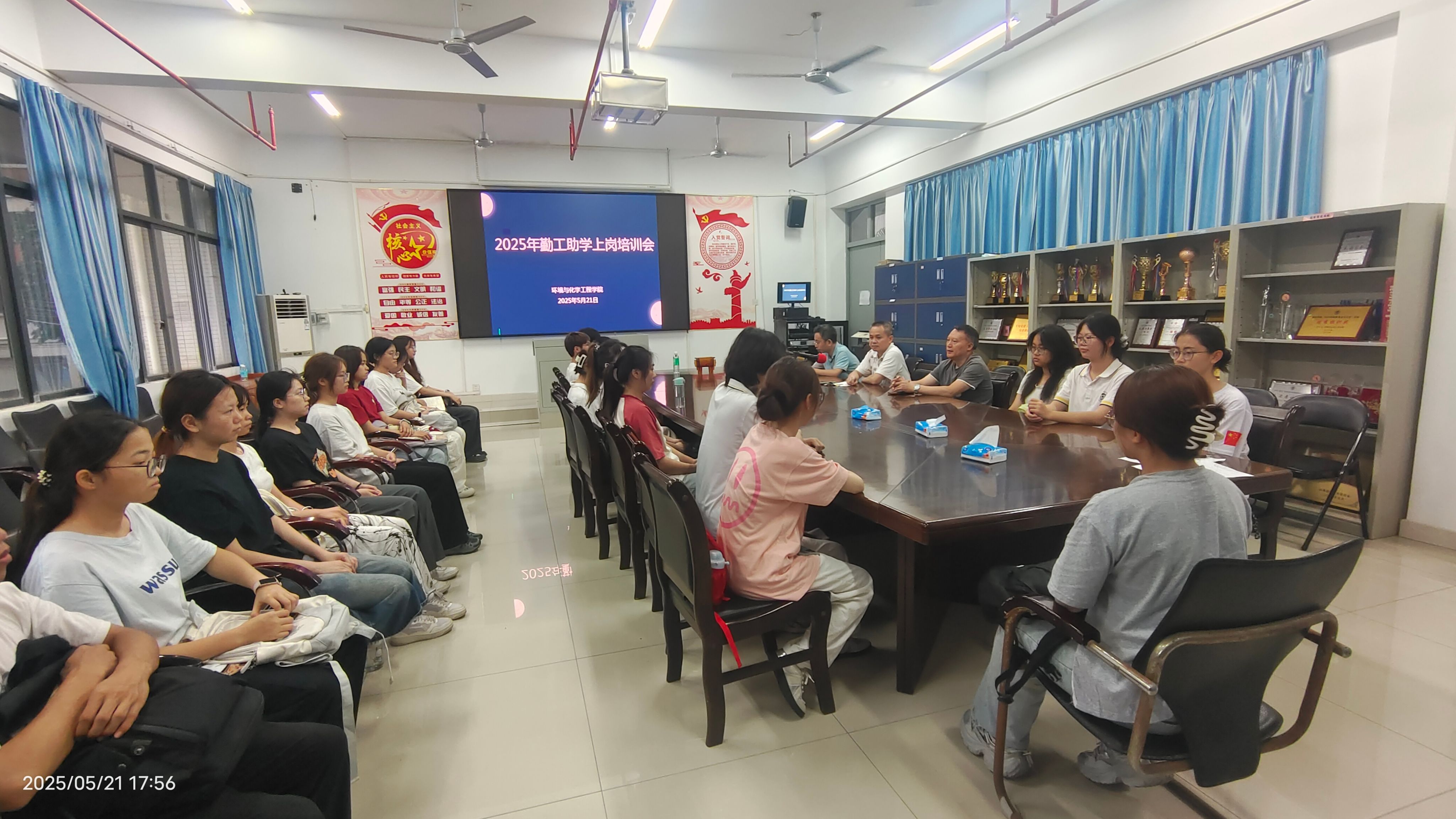 为充分发挥勤工助学岗位实践育人功能,全方位培养在岗学生的综合素养与专业技能,彰显资助育人成效,环境与化学工程学院于5月21日在理工大楼218会议室召开2025年勤工助学岗前培训会议。会议由学院实验中心主任张博主持,实验室指导老师植中强、李顺华主讲,25名勤工助学学生参加培训。