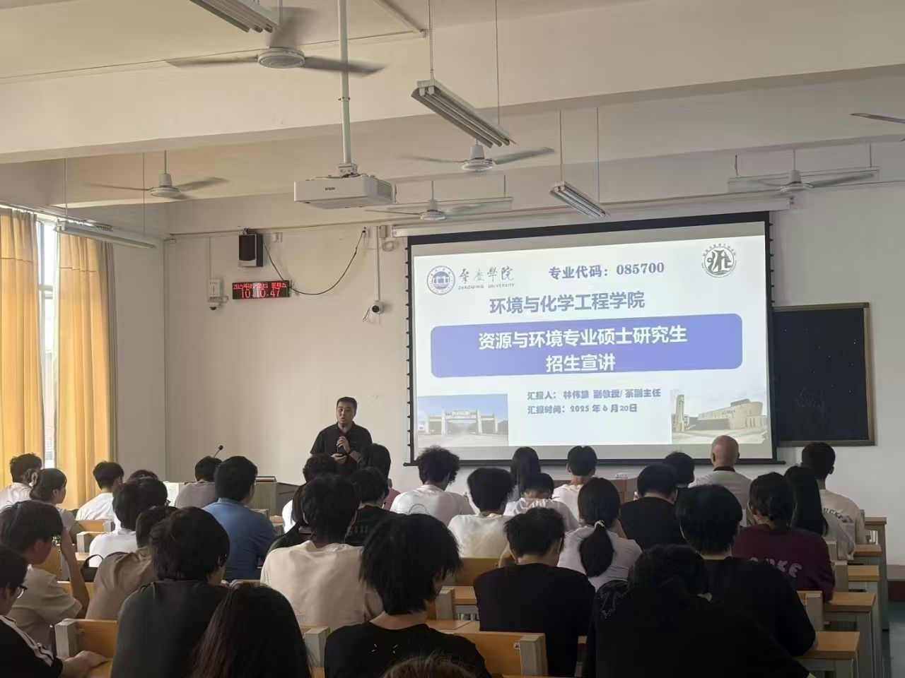 6月12日,学院副院长吴贤格、环境系系主任秦建桥、系副主任林伟雄、教师邓金环组成的宣讲团队,赴河池学院化学与生物工程学院进行宣讲。会议由该院陆俊宇副院长主持,韦托老师参会,2022级化学、应用化学、环境工程等专业学生积极参与。吴贤格副院长详细介绍了资源与环境专业硕士的招生政策、研究方向、师资力量及科研成果,同学们认真聆听并积极提问,现场气氛热烈。