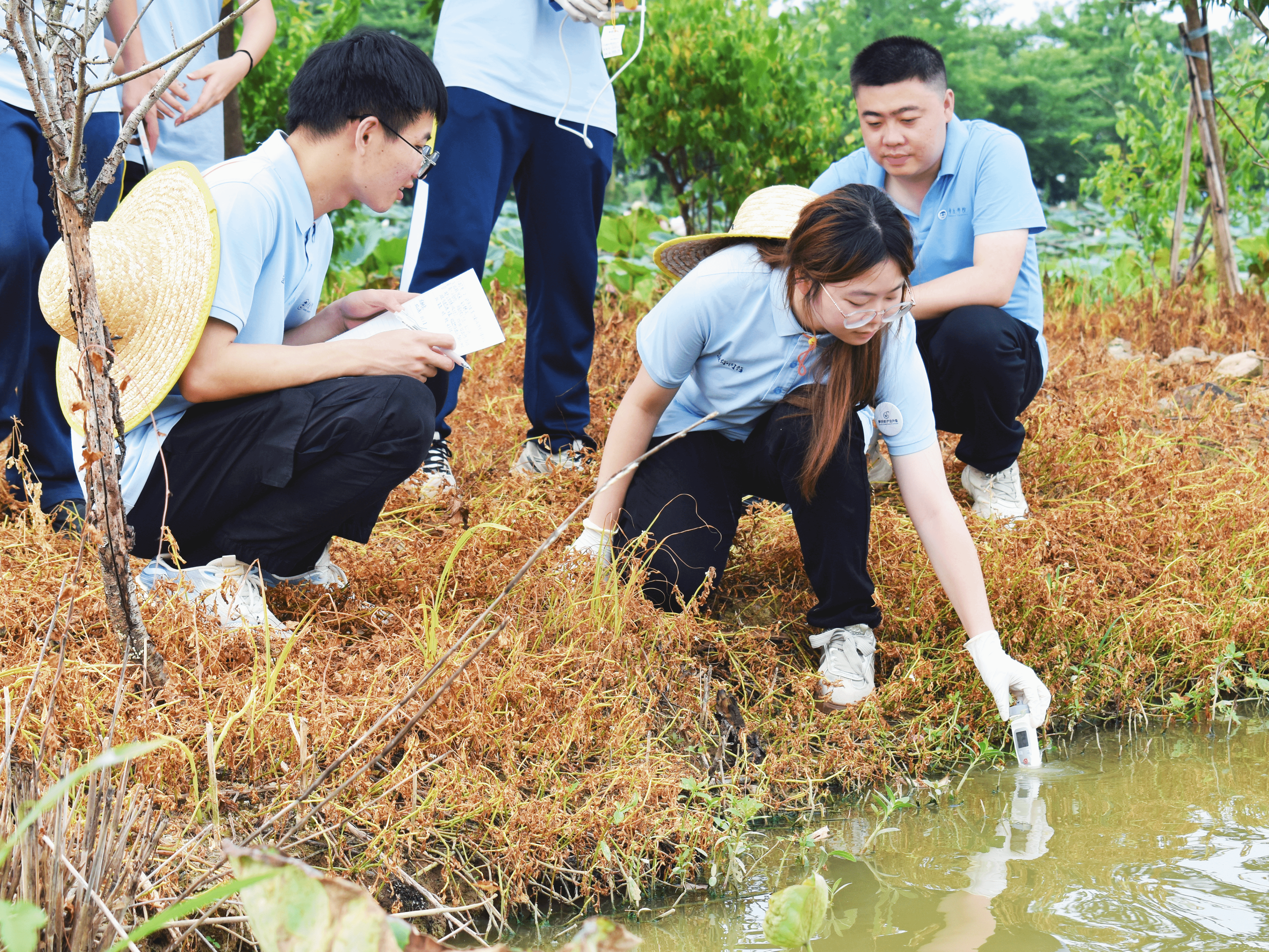 科学采样,优化管理。队员严格依据国家规范,选取代表性养殖池塘及尾水排放点采集水样,使用便携设备现场检测溶解氧、pH值等关键指标。