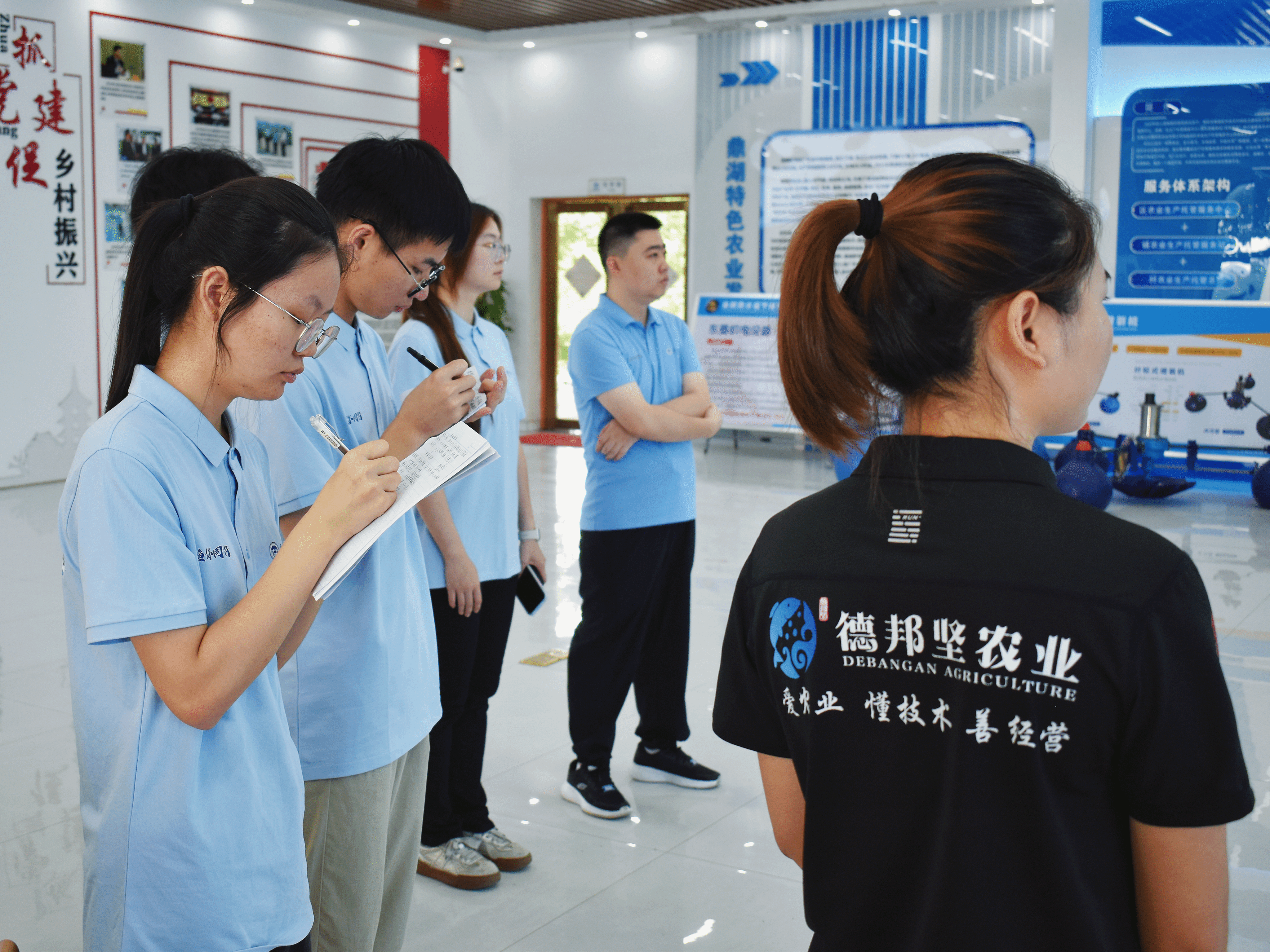 深入调研,精准把脉。队员在企业经理凌秋平的带领下,实地考察了高密度养殖基地及尾水管控流程。通过问卷调查,团队系统梳理尾水处理技术应用现状与痛点。
