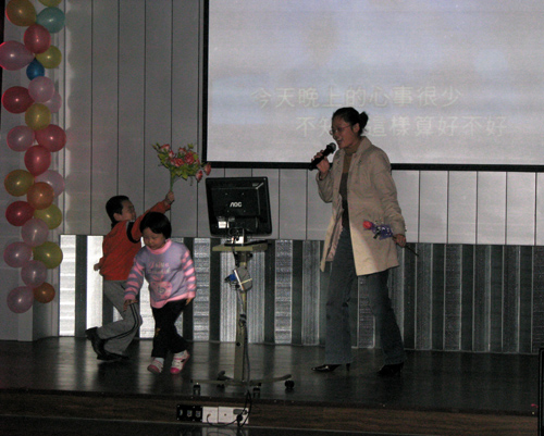 注:可爱小朋友情不自禁为刘燕芳老师献花