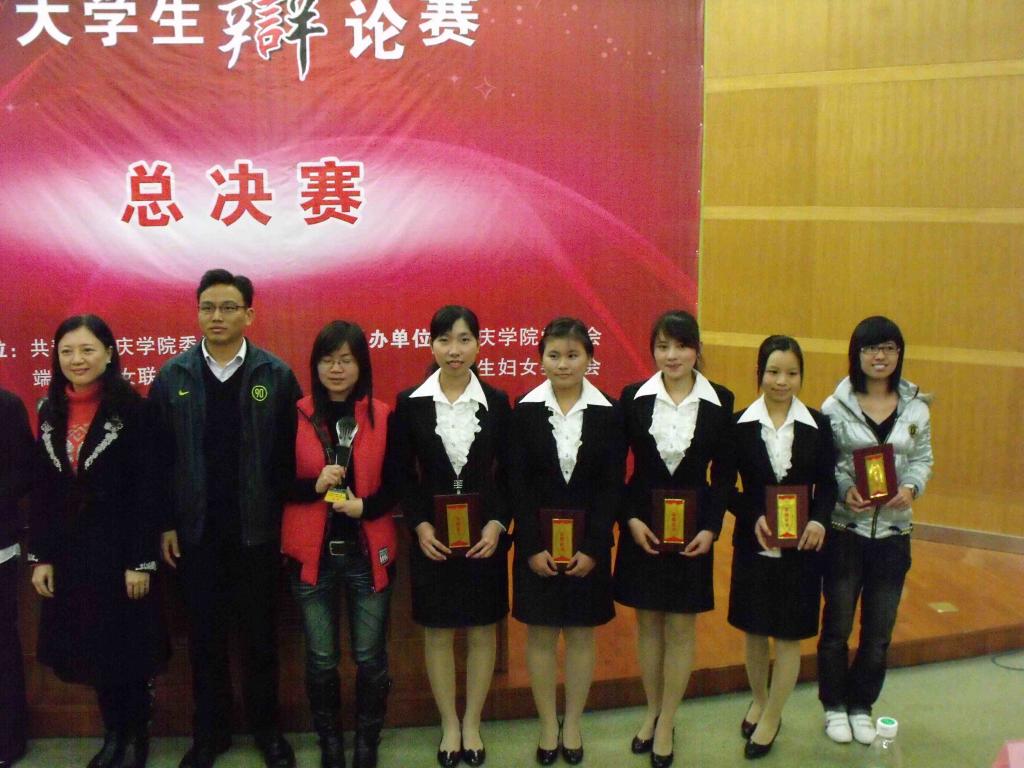 此次决赛,我院虽略逊色于文学院,屈居亚军,但她们的精彩论辩却不得不让人为之钦佩。最后,辩论赛在颁奖典礼的欢声中圆满落幕。至此,我校第一届“女子杯”大学生辩论赛画上了圆满的句号。