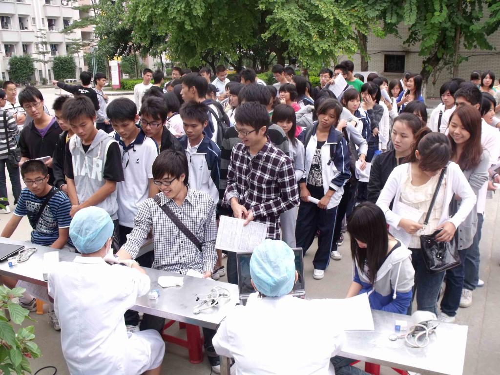 同学们在排队作健康检查