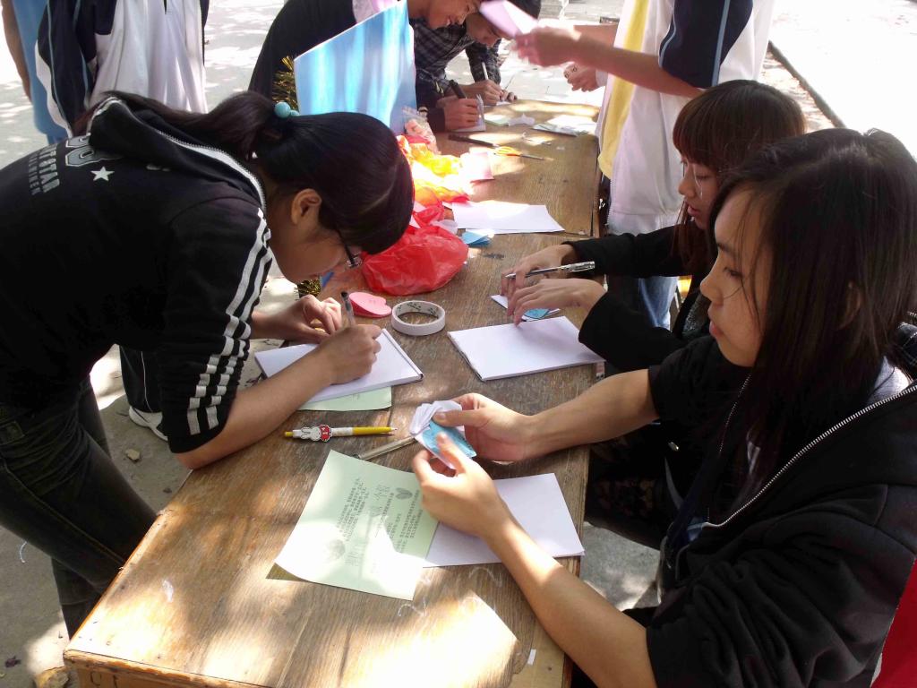 如火如荼的活动现场吸引了大批同学,同学们纷纷驻足摊前,在信件、小纸条上写下了埋藏在心底的话语,并由工作人员收齐后送到收件人手中。看着洋溢着灿烂微笑的笑脸,看着留言板上那一句句温馨、诚挚的祝福,相信这次活动一定能将同学们的温馨心语传递下去的。