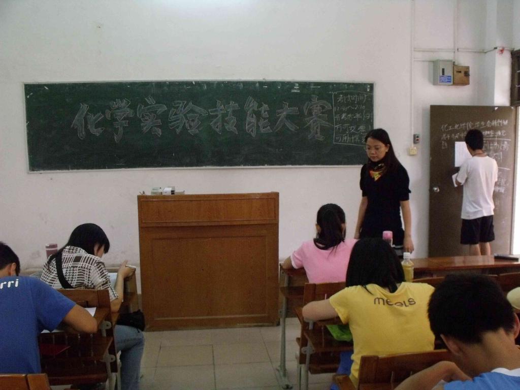 为了突出化学化工学院的特色,提高学生学习化学的积极性及实验动手能力。 5月25日中午,一场由我们学院学生会科创部举办的化学技能大赛在8栋教学楼105到109课室隆重举行。学院党委副书记陈玉华、严子军老师、辅导员刘黎明老师莅临现场巡考。