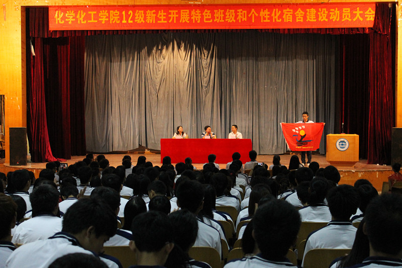 为进一步推进我院良好学风、班风建设,增强班级凝聚力,发展学生个人才能,提高自我管理能力,10月17日晚,我院于学生活动中心一楼隆重召开2012级新生开展特色班级和个性化宿舍建设动员大会。院党委书记李文明、党委副书记陈玉华出席本次大会,会议由辅导员刘黎明老师主持。