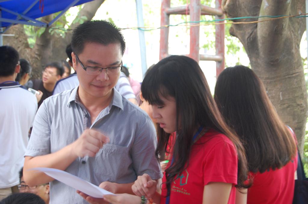 迎新人员热情等待新生的到来
