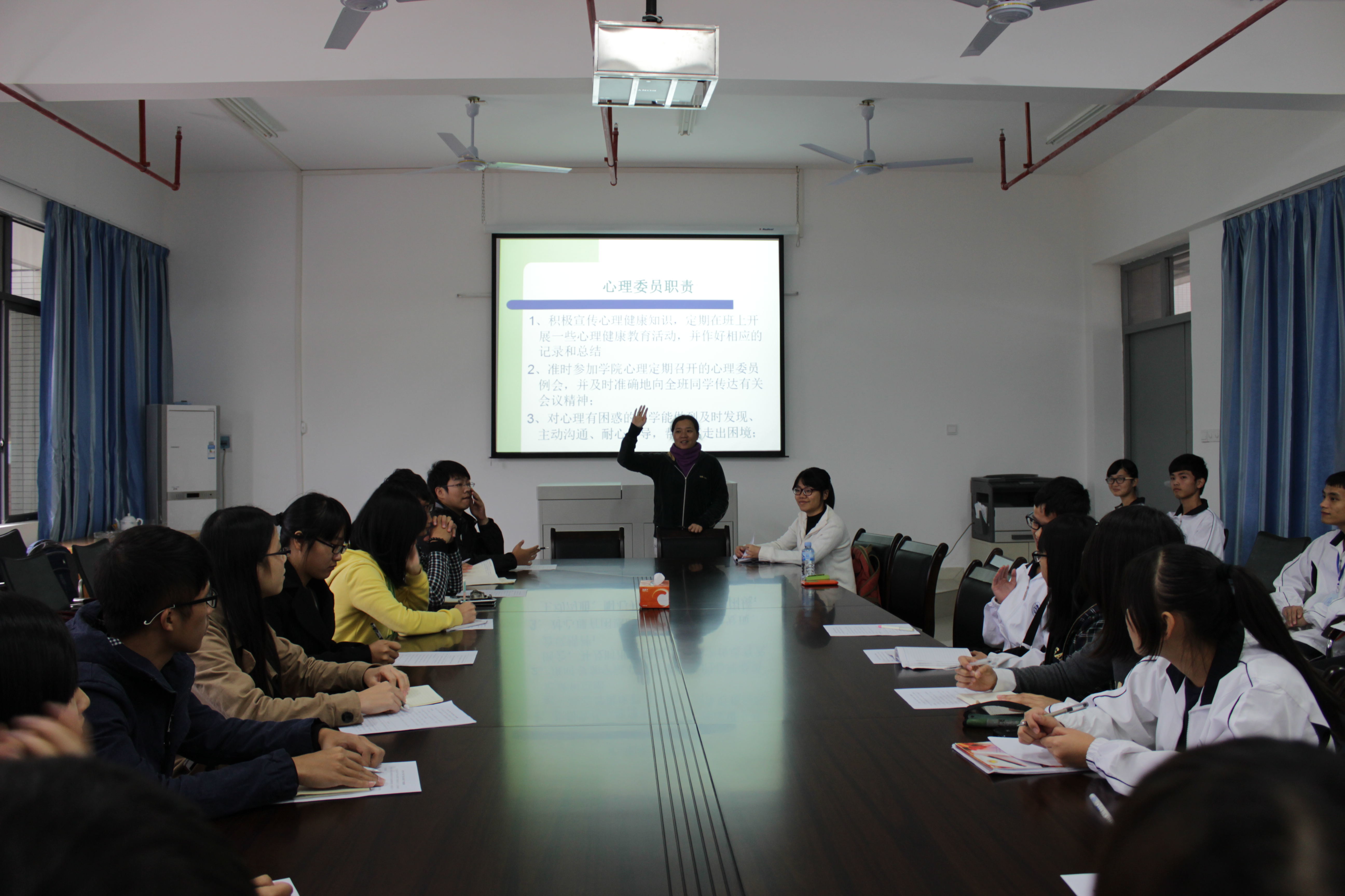 本网讯(记者 戴培新)大学生心理健康问题一直是一个备受大众关注的话题,特此,为促进我院学生心理健康工作的更好地开展,12月1日下午,在我院健康促进委员会的组织下,各班心理委员到理工大楼会议室参加了心理健康培训,担任本次培训的主讲师是我院辅导员黄玉梅老师。