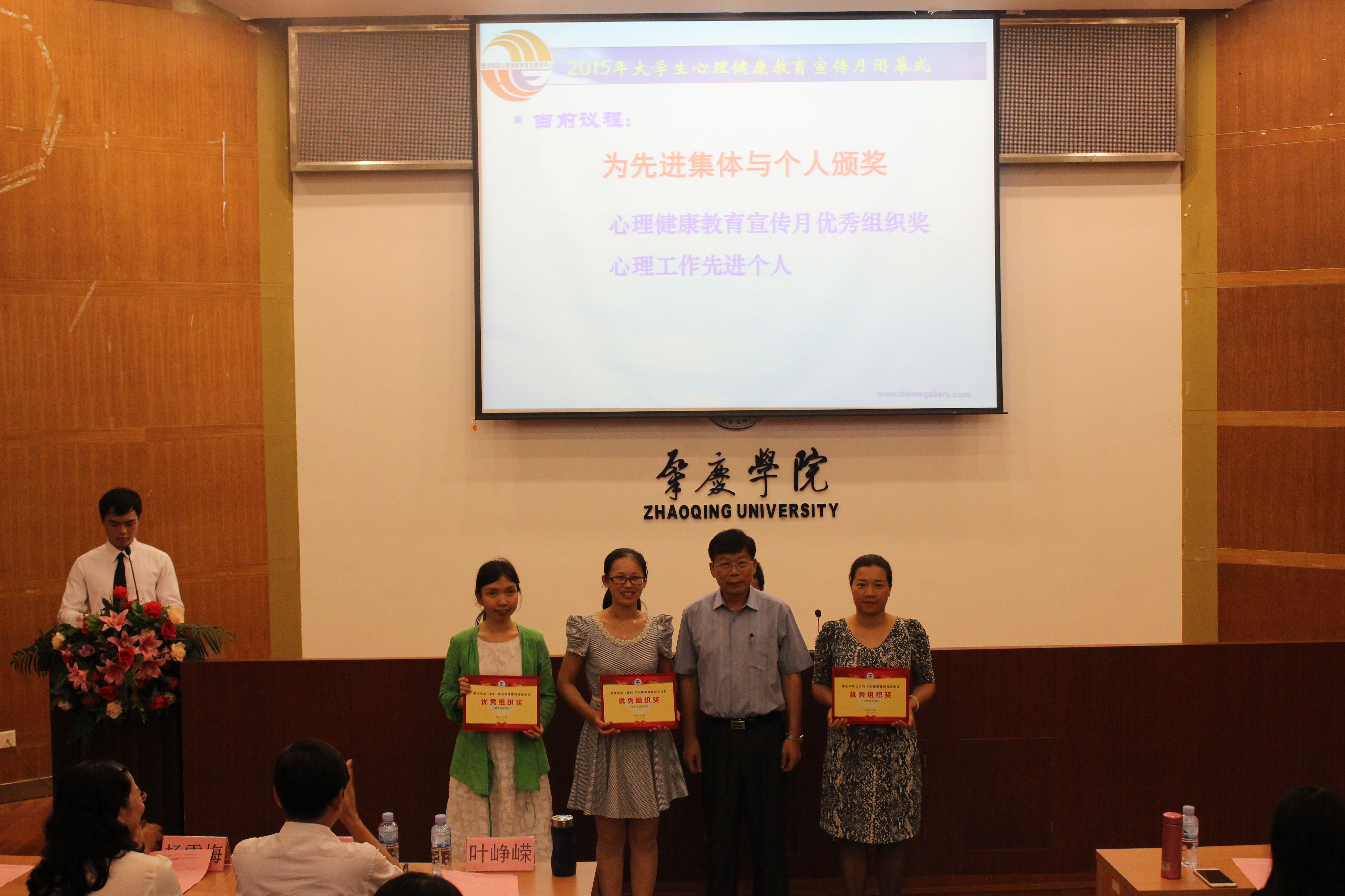 2015年大学生心理健康教育宣传月落下帷幕,闭幕式暨表彰大会于5月27日在图书馆学术报告厅举行。我院在全校仅有的三个优秀组织奖中争得一席,黄玉梅辅导员荣获心理工作先进个人奖、另有十名心理委员获得“优秀心理委员”称号(名单见附表)。