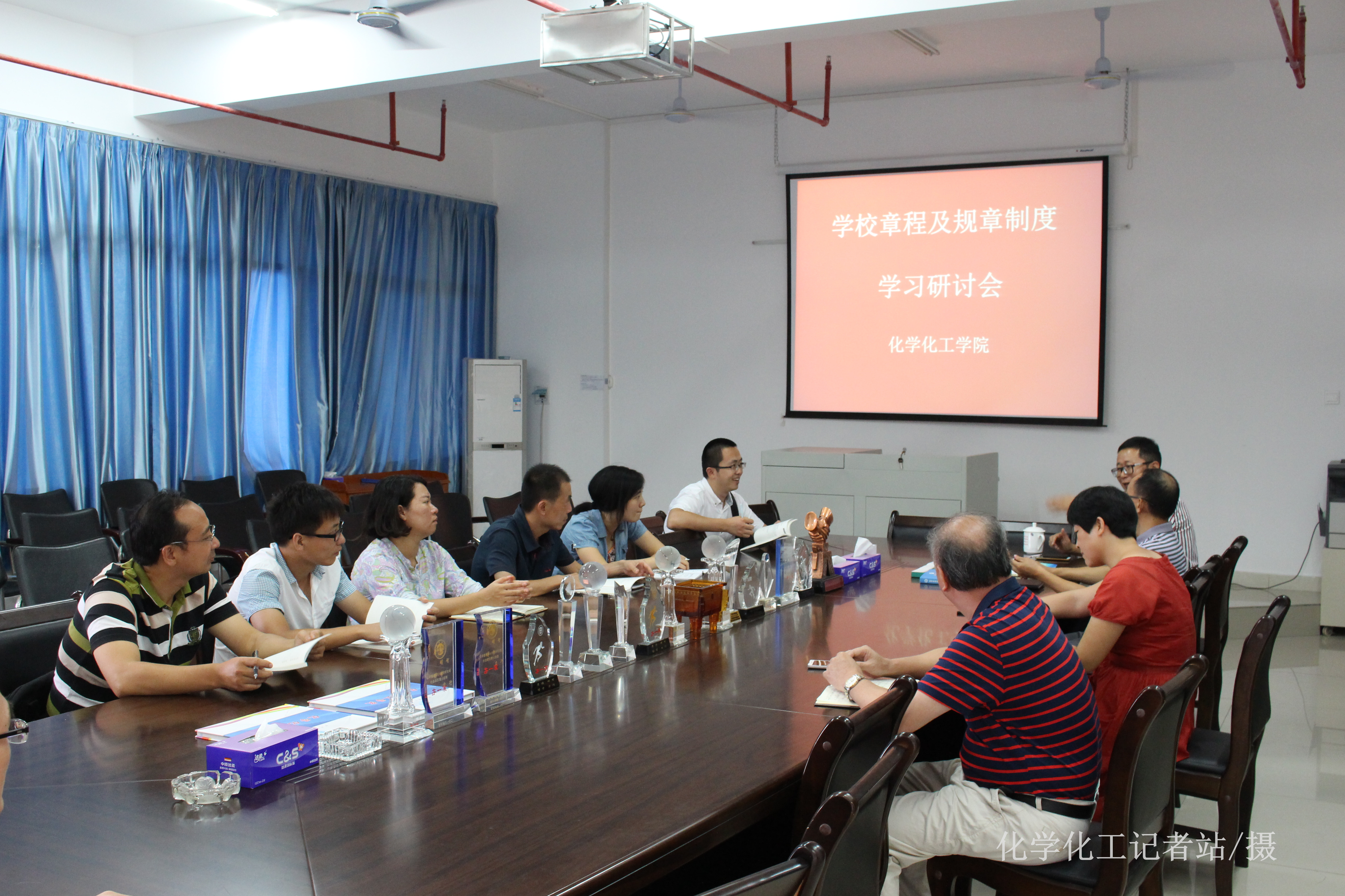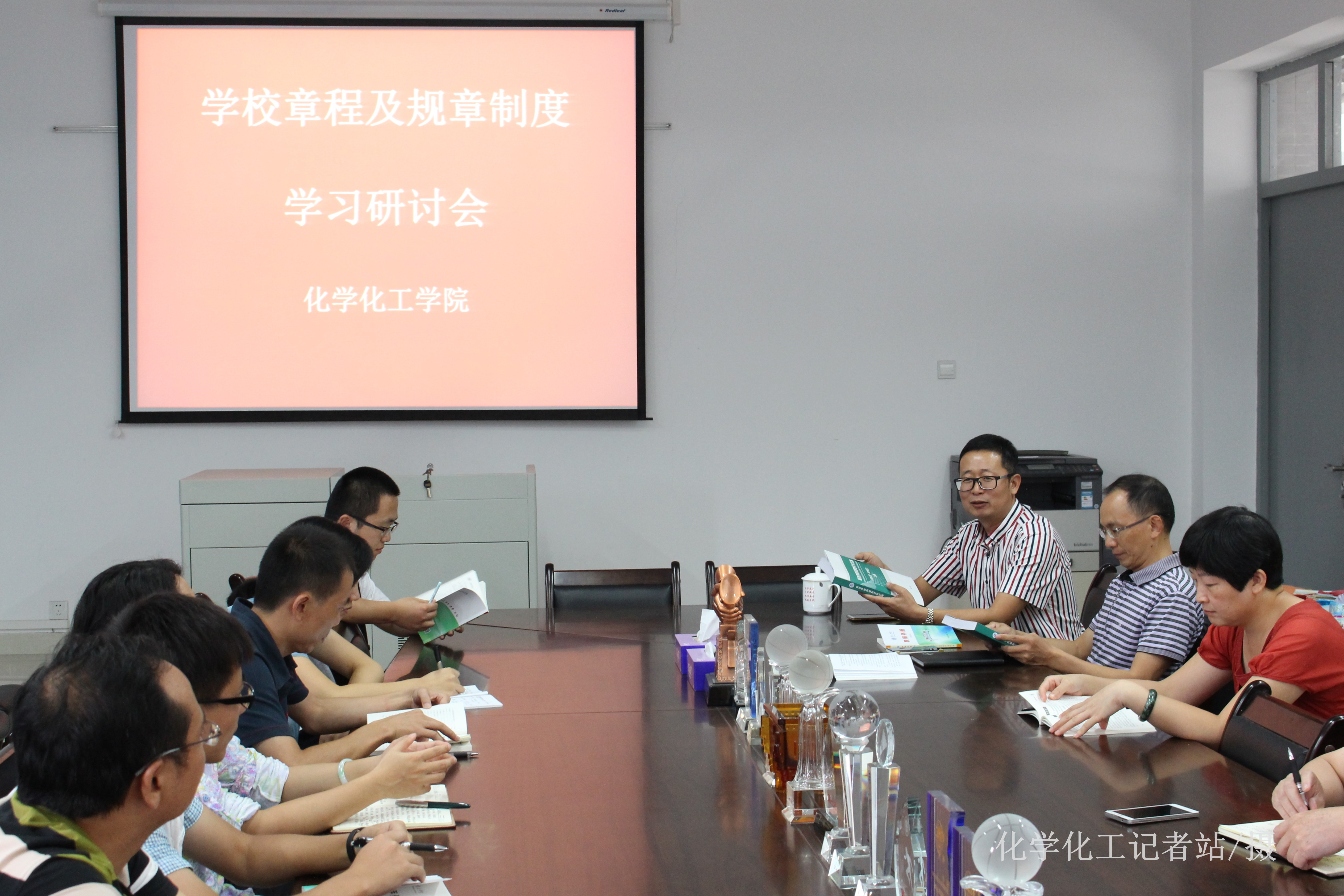 2016年10月8日,我院根据学校《关于组织开展学校章程及规章制度学习研讨和贯彻落实的通知》精神,按照肇学委[2016]1号文件的有关部署和安排,学院领导班子和新进教职工开展了“学校章程及规章制度学习研讨和贯彻落实”专题会议。 本次会议由学院党委书记杨子岐主持,副院长梁巧荣、副院长李妍、党委副书记蔡振治和近几年新进的教师出席了会议。 杨子岐书记传达了学校文件精神和学习要求,分管实验室工作的梁巧荣副院长和分管教学工作的李妍副院长,分别向大家讲述有关实验室安全工作和教学工作等相关的规章制度;分管纪委和学生工作的蔡振治副书记结合实际事例,向大家提出工作上需要注意的事项。 本次学习研讨会,使我院领导干部和教师对“学校章程和规章制度”有了进一步的了解,对学校历史、办学理念、目标定位、管理制度等有了更全面的认识,为大家在今后的管理和教学工作中顺利完成工作任务、依法依规按章办事奠定了良好的基础。