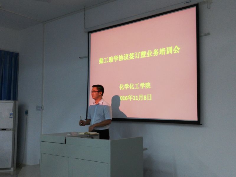 2016年11月8日中午,我院对新一批勤工助学学生开展业务培训。辅导员李进华老师简单介绍了我校和我院近几年勤工助学在岗位设置、劳动报酬变化等方面的概况,从工作时间、纪律、衣着、学习等方面对学生提出了严格的要求,明确了勤工助学学生的权利、责任和义务,引导学生要怀有一颗感恩的心,以端正的学习态度、饱满的工作热情投入学习和工作,以实际行动回报党和政府以及学校的关怀,不断收获学习成果和丰富精神世界,努力学习,用心工作,真正做到学习工作两不误。