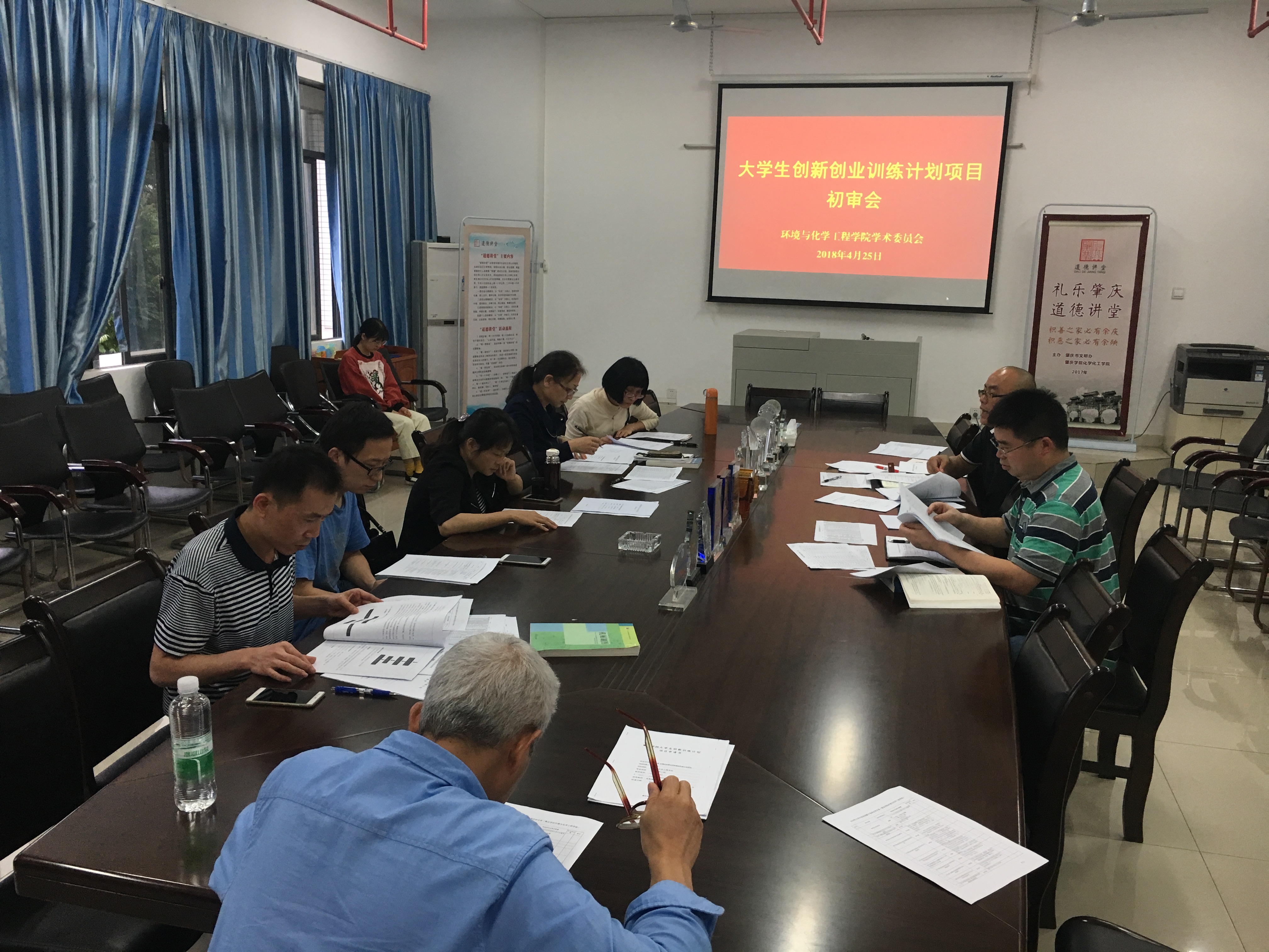 环境与化学工程学院2018年大学生创新创业训练计划项目申报初选会于4月25日组织召开,会议由吴贤格副院长主持。学院学术委员会成员组成的评审小组,就项目可行性、学术价值等方面对我院黄玲珠等同学申报的12项大创项目立项申请书进行综合评判,学院将根据此次评审结果择优向学校推荐2018年大学生创新创业训练计划项目。(撰稿、摄影:胥家桢;审稿:梁标)