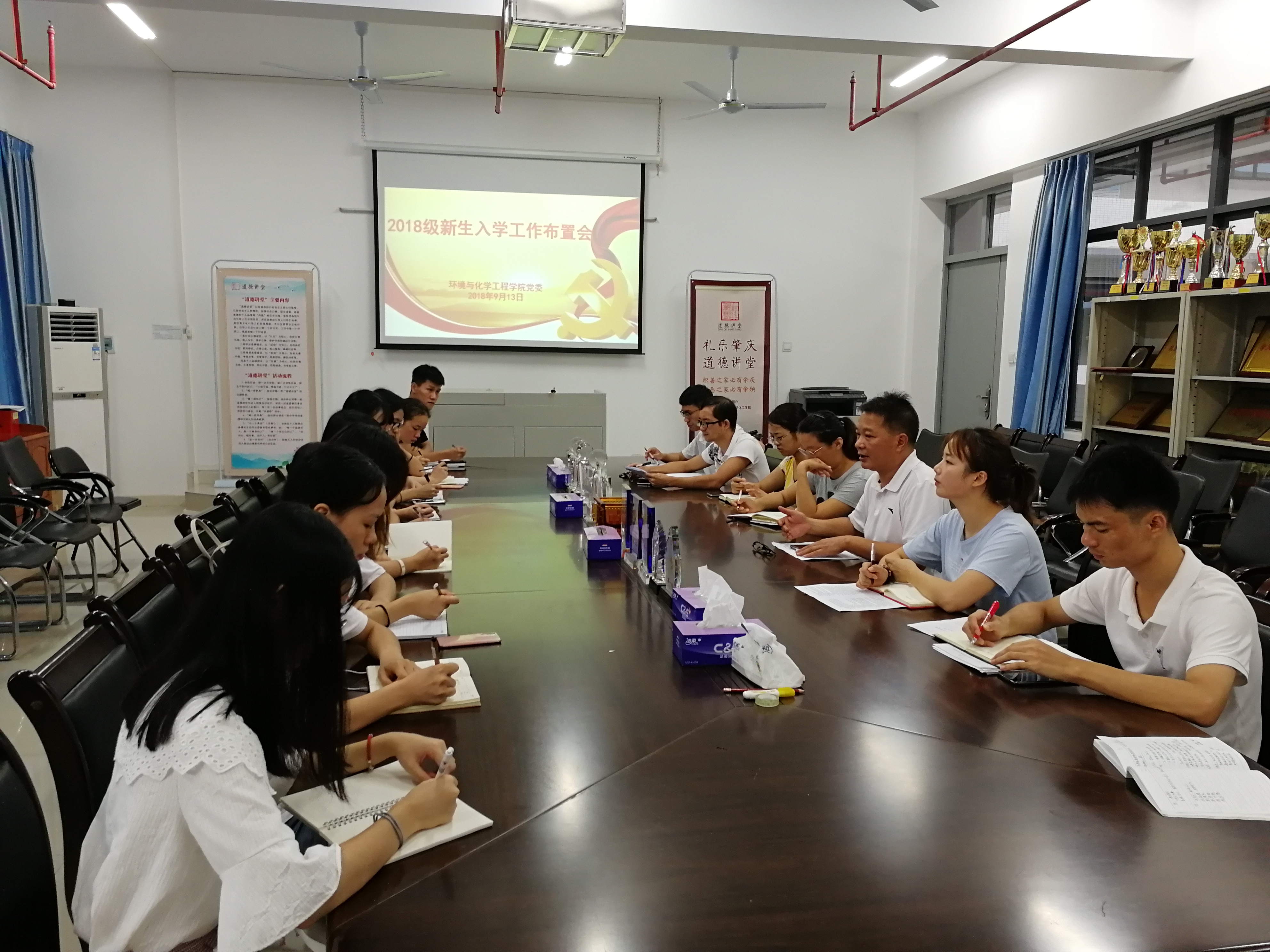 为扎实做好2018年新生接待工作,确保我院新生入学工作安全有序进行,9月14日下 午,环境与化学工程学院“2018年新生入学工作协调布置会”在学院会议室召开,学院党委副书记梁标出席会议,全体辅导员、新生班班主任、学生带班党员参加会议。