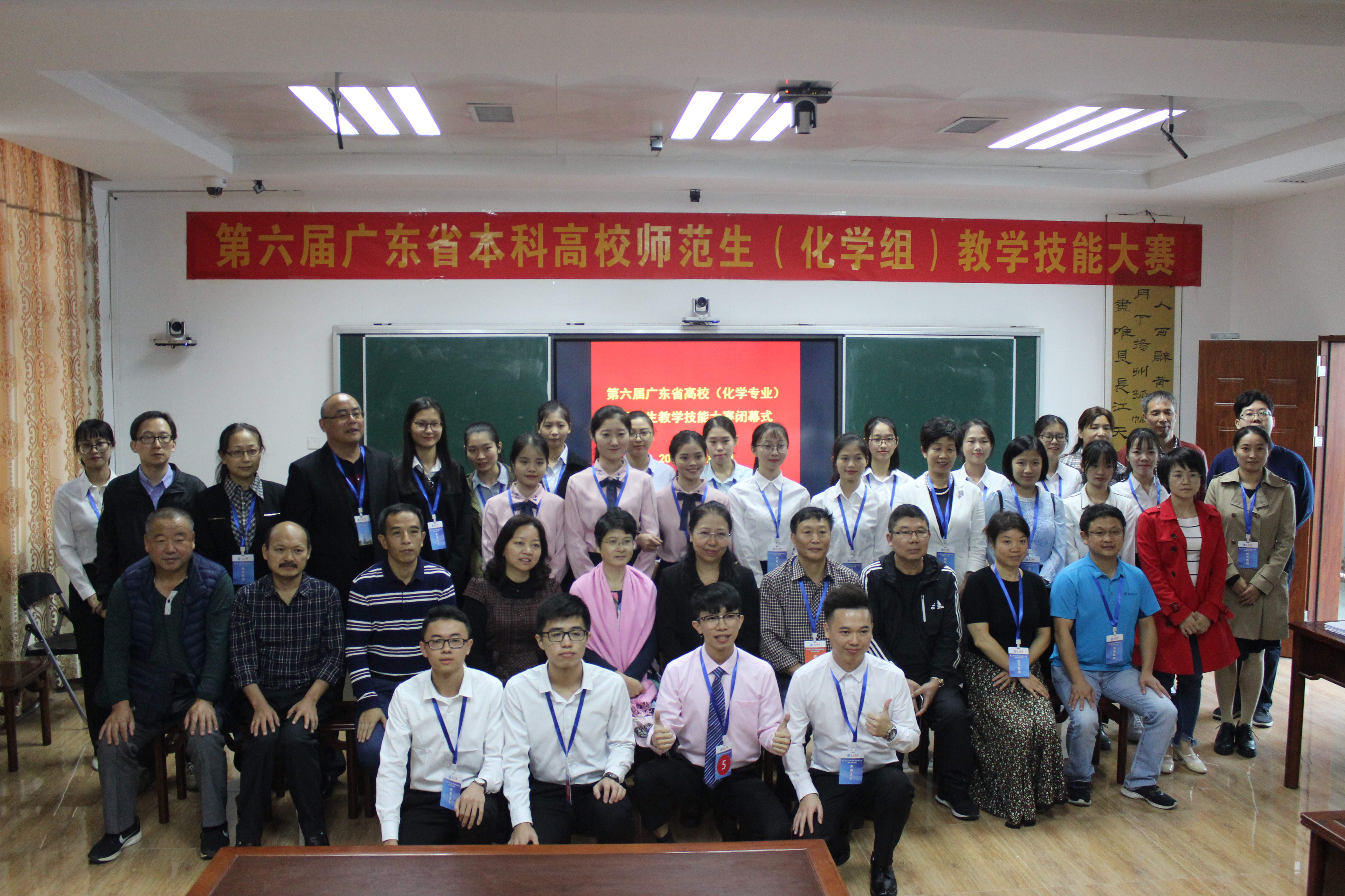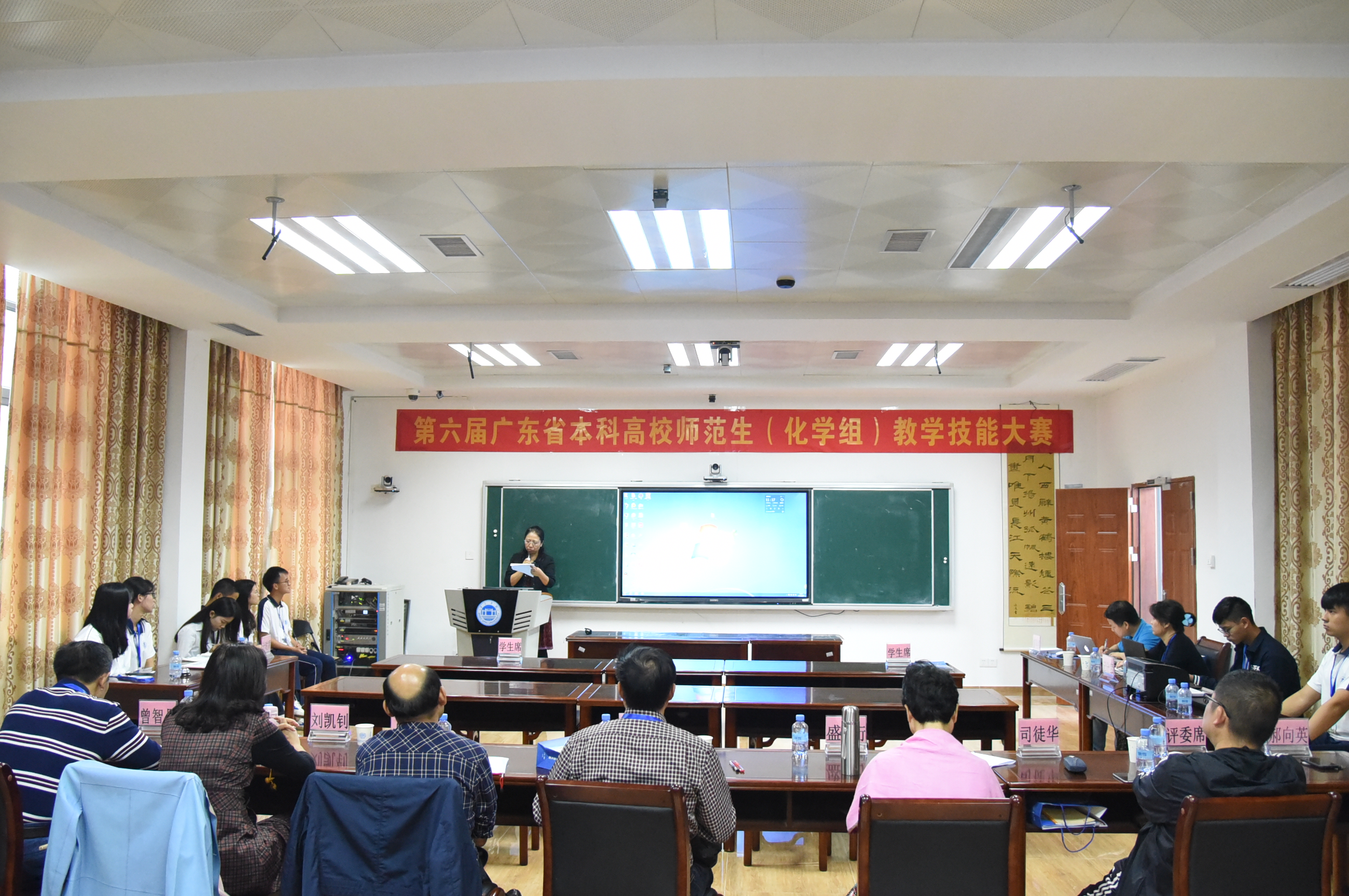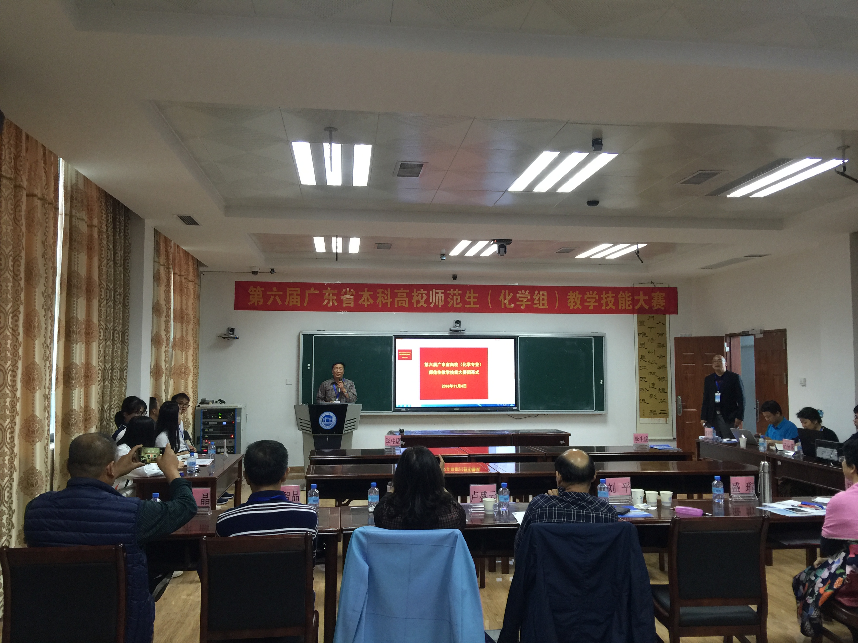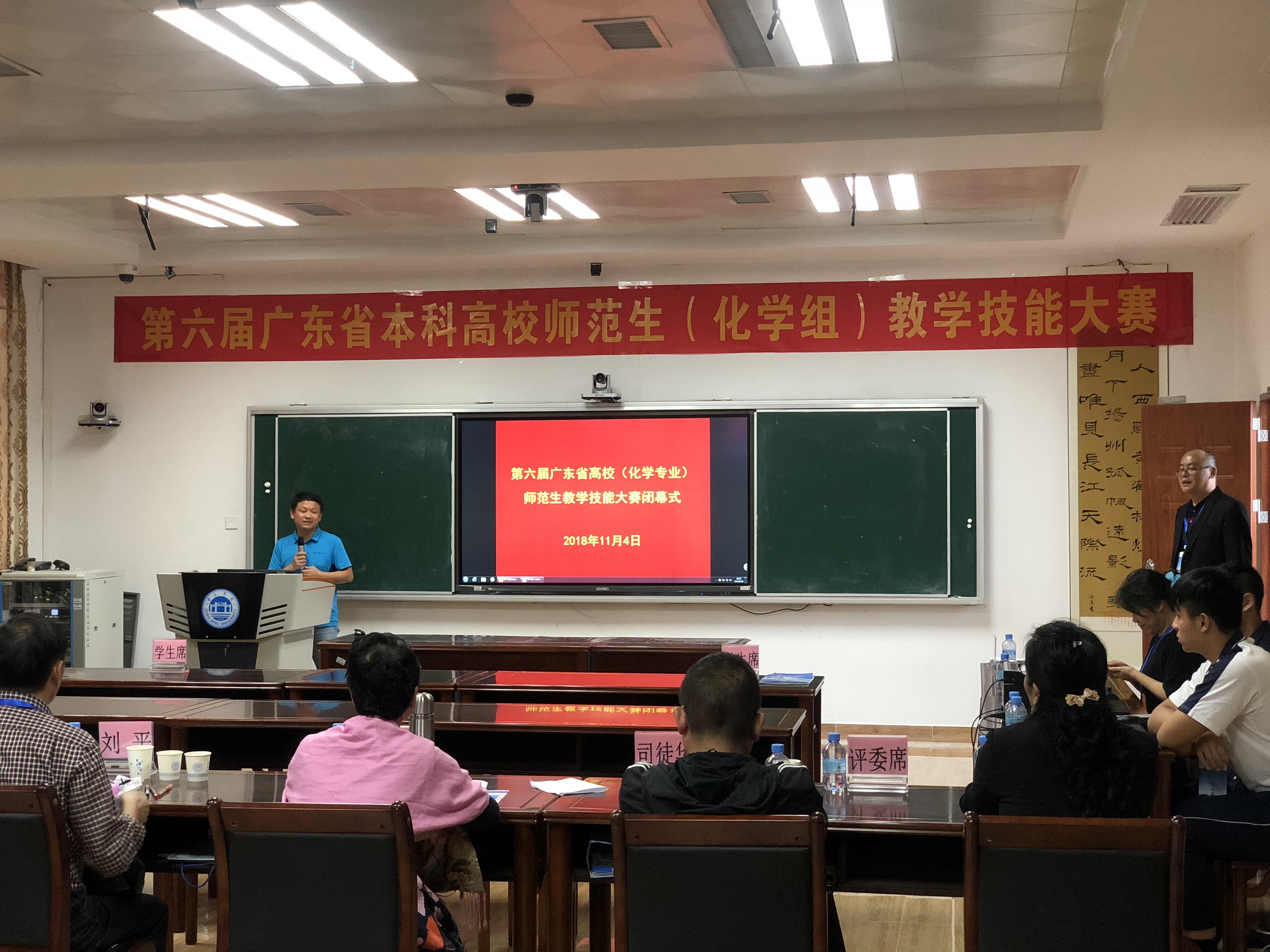 【环境与化学工程学院 本网讯】 11月4日,由我院承办的第六届广东省本科高校师范生(化学组)教学技能大赛闭幕式在学校教师发展中心107课室隆重举行,组委会荣幸邀请到省内市县化学教学一线的资深教研员刘平、荣晶、曾智品、刘凯钊、卢盛云、盛珩、司徒华等7位老师担任评委。参加本次大赛的选手共27名,分别来自华南师范大学、广州大学、广东第二师范学院、惠州学院、岭南师院、韶关学院、嘉应学院、韩山师院和william威廉中文官网等九所省内高校。