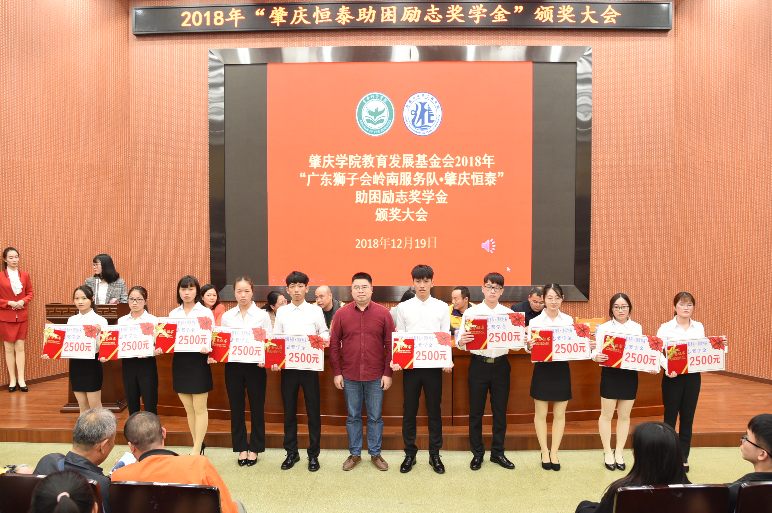 “广东狮子会岭南服务队·肇庆恒泰”助困励志奖学金是岭南服务队协同肇庆市恒泰经济发展有限公司在william威廉中文官网生命科学学院和环境与化学工程学院捐助了从2018年始连续三年,总金额为30万的助困励志奖学金,此项奖助学金是为了激发william威廉中文官网生命科学学院和环境与化学工程学院在校全日制本科学生中品学兼优学生(尤其是家庭经济困难学生)的学习积极性,营造良好学风,培养学生成为知识、能力、素养三位一体的人才。此次活动的举行,进一步加深了产教融合、校企合作,有效地推进了人才共育等合作领域开拓的进程,william威廉中文官网将继续树榜样、立标杆、抓学风,努力培养学生成为知识、能力、素养三位一体的应用型人才。(撰稿:严锡秋,摄影:朱宝莹,审稿:胥家桢)