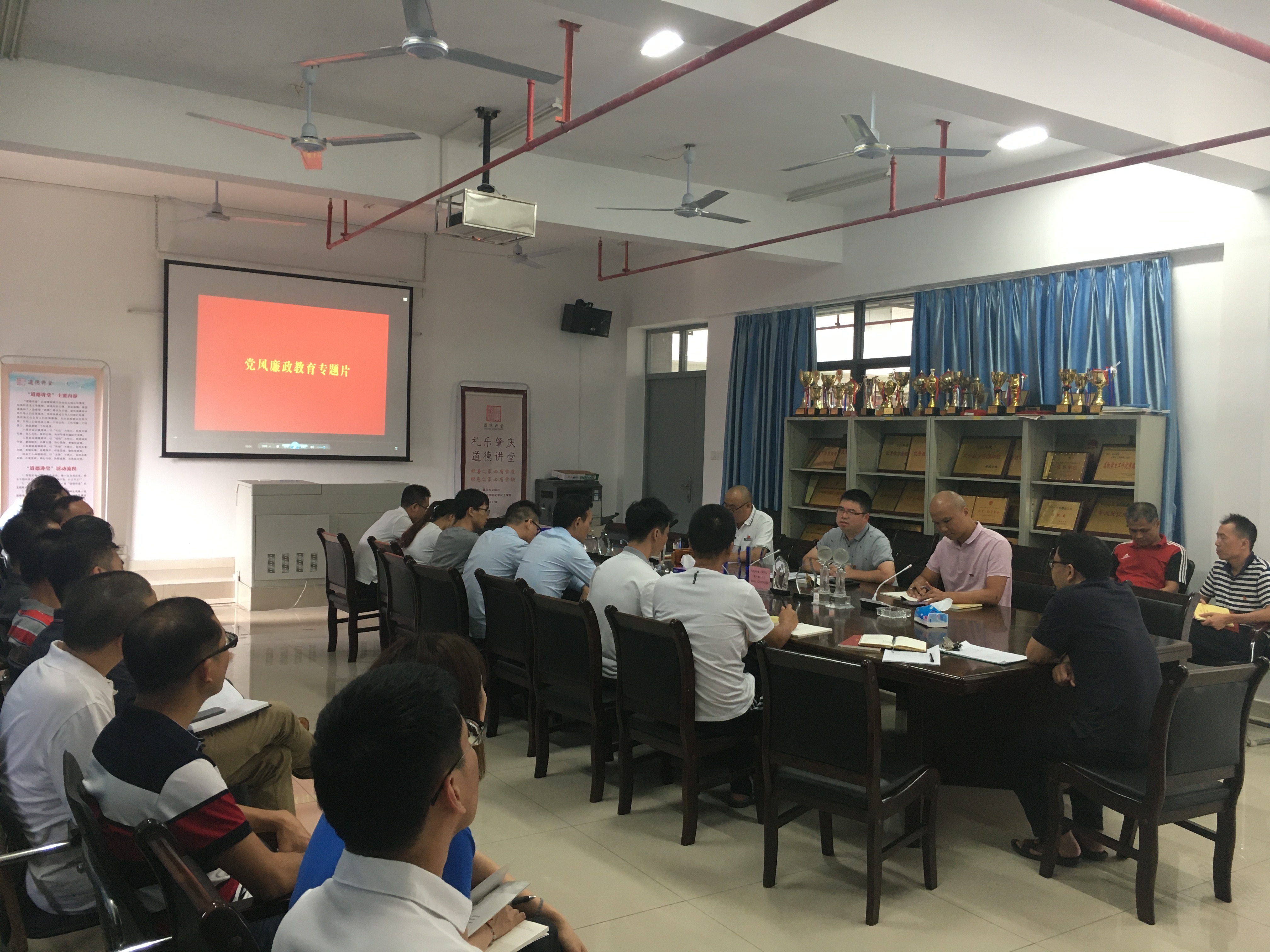 推进会后,全体与会党员集中观看了党风廉政专题教育片《恶伞——原省国土资源厅党组成员、执法监察局局长李师案警示录》,并就“绷紧廉政弦”、“守好初心”等话题开展观后交流讨论。