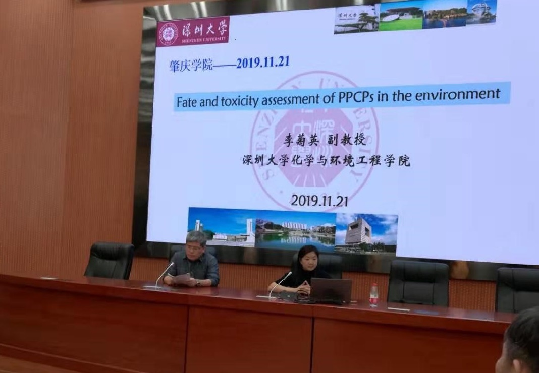 本次讲座由彭昌盛教授主持,他详细介绍了李菊英副教授的研究方向和学术成果,讲座随后正式开始。李菊英副教授作了题为《卡马西平在土壤-植物体系的迁移转化与归趋研究》的学术讲座,从卡马西平的危害、进入土壤的途径、土壤-植物体系的迁移转化、降解产物的分布与危害、环境因子对其环境行为的影响等方面介绍了卡马西平迁移转化的机理。李菊英副教授的精彩讲座展现了较高的学术水平,并且回答了现场老师和同学们的提问,赢得了现场师生的一致好评,纷纷表示获益匪浅。