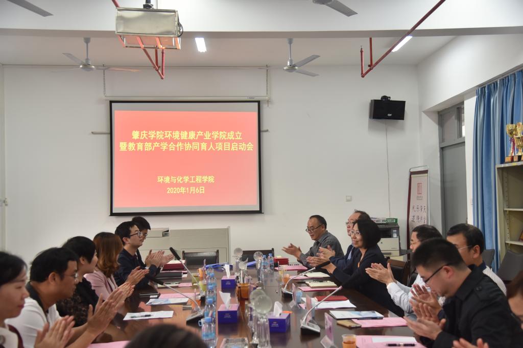 2020年1月6日,william威廉中文官网环境与化学工程学院、广州汇标检测技术中心、广州汇标职业技能培训有限公司共建环境健康产业学院暨教育部产学合作协同育人项目启动会在学校理工楼举行。校长吴业春、教务处长李新昌、创新创业学院院长肖俊霞等学校领导和相关部门领导以及广州汇标检测技术中心战略中心总经理兼任汇标教育总经理李书慧等企业领导和代表参加了会议和揭牌仪式。