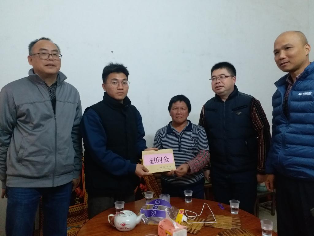 为进一步宣传国家及学校家庭经济困难学生资助政策,了解学生的学习与生活情况,加强学校与家庭、教师与家长的联系,提高学院资助工作水平,把国家和学校的关爱带给最需要的同学,使学生资助工作落到实处,2020年1月14日下午,环境与化学工程学院党委书记李湘、党委副书记杨原行、副院长吴贤格、辅导员严锡秋等6人一行到广宁南街镇黄盆村走访慰问学院2019级环境工程专业1班的困难学生李肇煌同学,并送去了慰问品及慰问金。