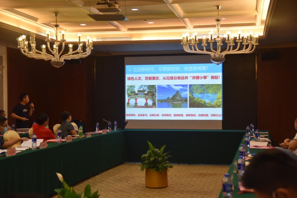 习近平总书记说“实行垃圾分类,关系广大人民群众生活环境,关系节约使用资源,也是社会文明水平的一个重要体现”,汇报以时代背景与社会需求为基点展开。校亮老师分析到,生活垃圾分类是一个从理念到习惯再到模式的过程,作为“指引”编制单位,前期在肇庆市城市管理和综合执法局协助下做了大量的调研工作,搜集到可靠的一手数据做支撑,理论与实际相结合,编制《指引》。《指引》中提到,结合肇庆市实际情况,本市城市生活垃圾分为:可回收物、有害垃圾、厨余垃圾和其他垃圾四大类;同时还对可回收物进行了定义和分类。
