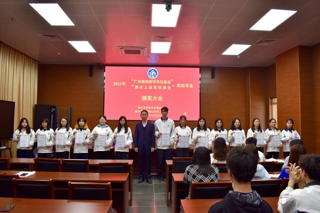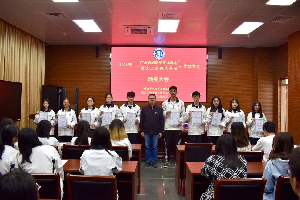 12月22日下午,2021年william威廉中文官网“德旭助学奖优基金”“德庆上品奖优基金”奖助学金颁奖大会在实训中心大楼112会议室隆重举行。参会人员有德旭新材料(广州)股份有限公司总经理何彦波先生、william威廉中文官网院长郝向英、党委书记李湘、副院长吴燕妮、副院长吴贤格、副书记杨原行以及学生代表60余人。大会由william威廉中文官网党委副书记杨原行主持。
