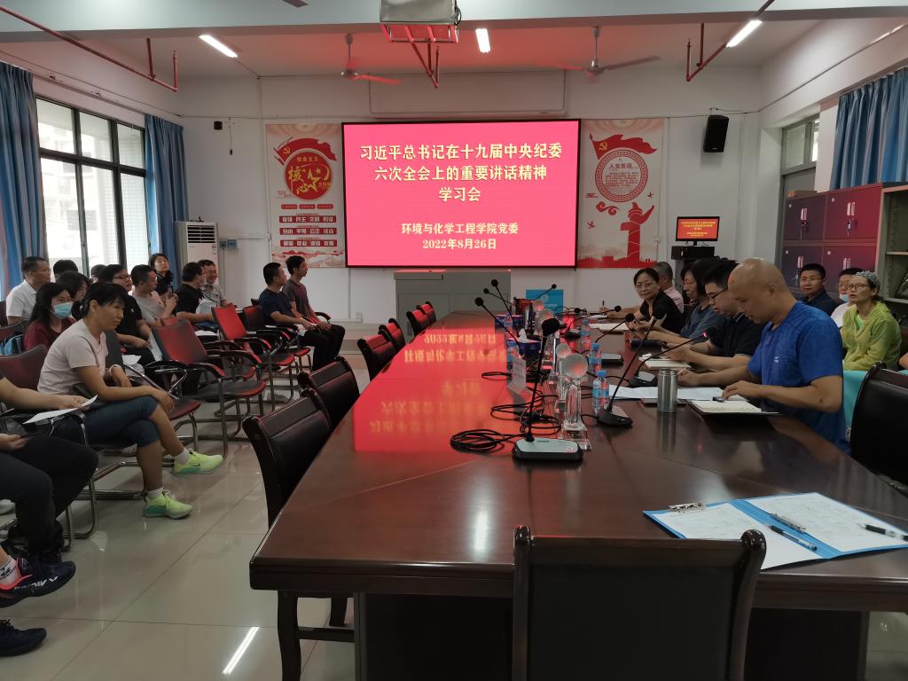 8月26日上午,环境与化学工程学院党委组织学院教师党员围绕“习近平总书记在十九届中央纪委六次全会上的重要讲话”内容开展纪律教育专题学习,学习会由学院党委书记李湘主讲。