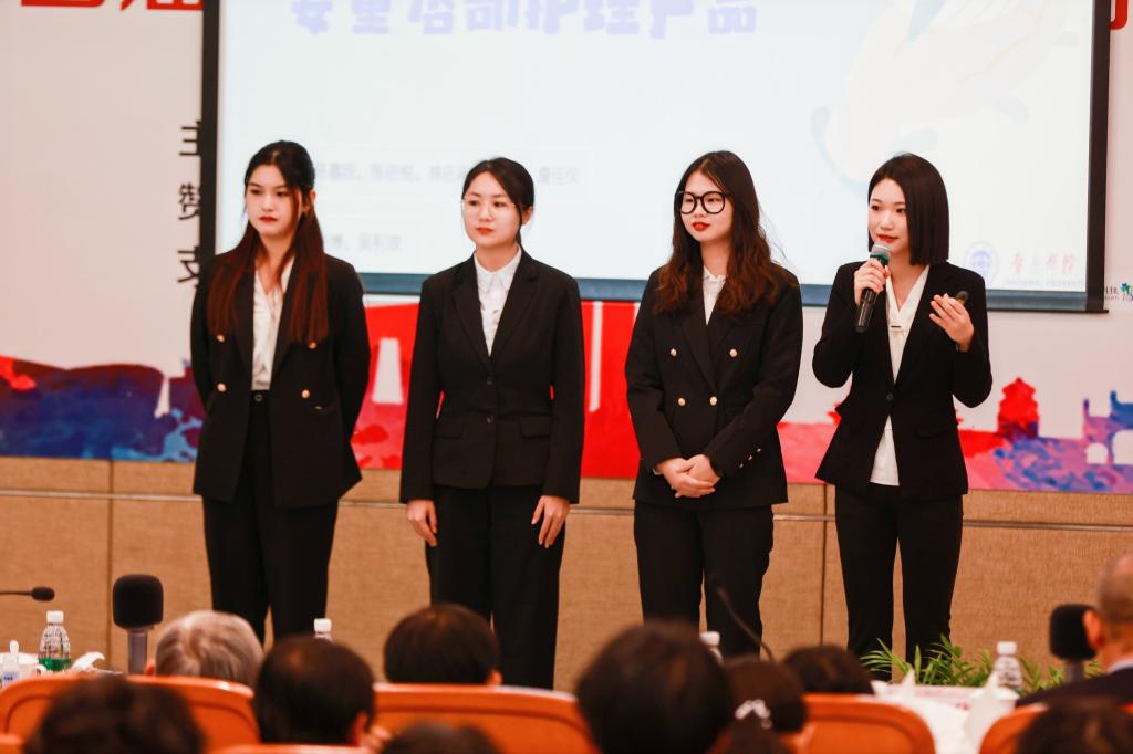学院2020级化妆品技术与工程专业学生陈嘉欣代表参赛学生发言,她表示作为当代化妆品专业青年需要发扬“钉钉子精神”,在设计开发化妆品的过程中保持稳扎稳打、锲而不舍的精神状态,坚定不移的打造更安全、更可靠、更有效的产品。她还呼吁同学们朝着化妆品匠人迈步,始终保持目标如一、事事讲认真不苟且的态度,倡导当代化妆品人理应有鸿鹄志,当骑骏马踏平川,以“剑气纵横三万里”的气势赴“日新月异破桎梏”的新时代。