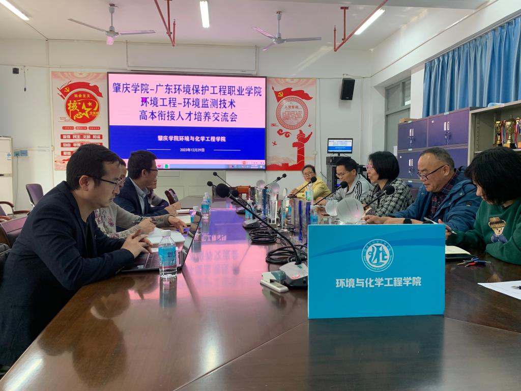 2023年12月29日下午,广东环境保护工程职业学院环境监测学院蔡宗平院长来院,与我院就高本衔接协同育人开展专题座谈,广东环境保护工程职业学院环境监测学院副院长戴险峰、环境监测技术专业负责人曹美苑、骨干教师龙远奎一同来院。学院院长郝向英、副院长吴贤格、环境系系主任戴洪文及专业骨干教师、班主任、年级辅导员参加了此次座谈。