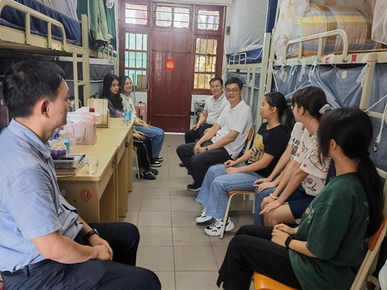 根据学校领导干部深入基层联系学生工作安排,7月8日下午,副校长唐冬冬在环境与化学工程学院党委书记刘远君及相关辅导员的陪同下走访了2023级化学专业宿舍,与同学们进行了座谈。