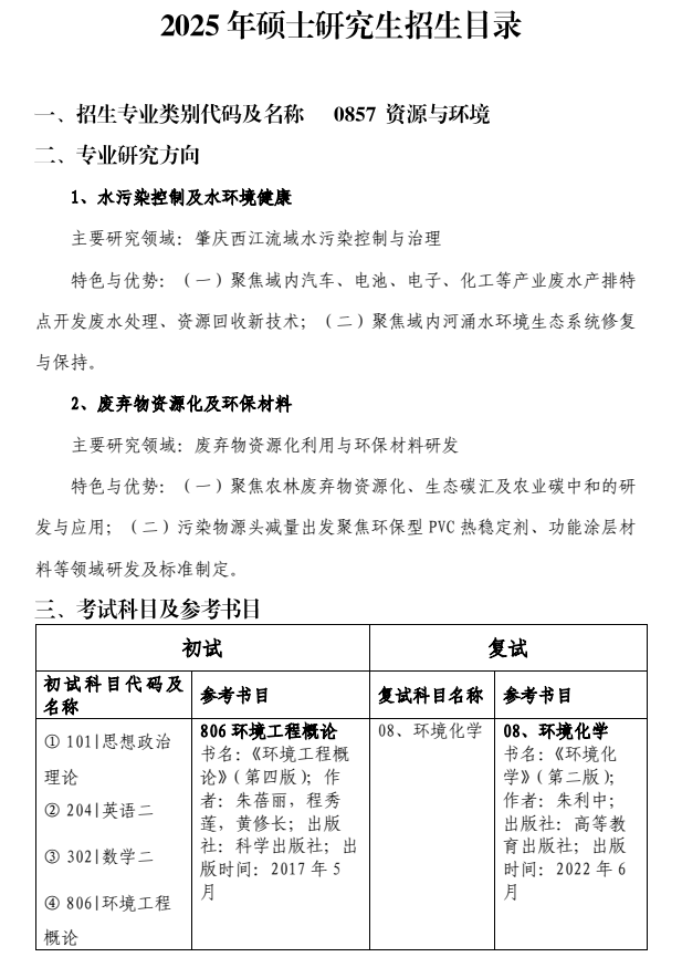 william威廉中文官网环境与化学工程学院2025年硕士研究生招生目录