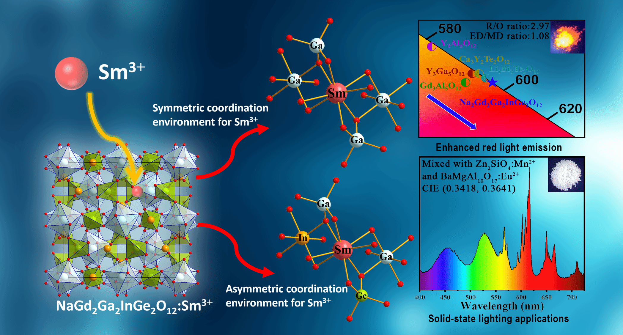 附图. Sm3+配位环境调控及其红光发射性能示意图